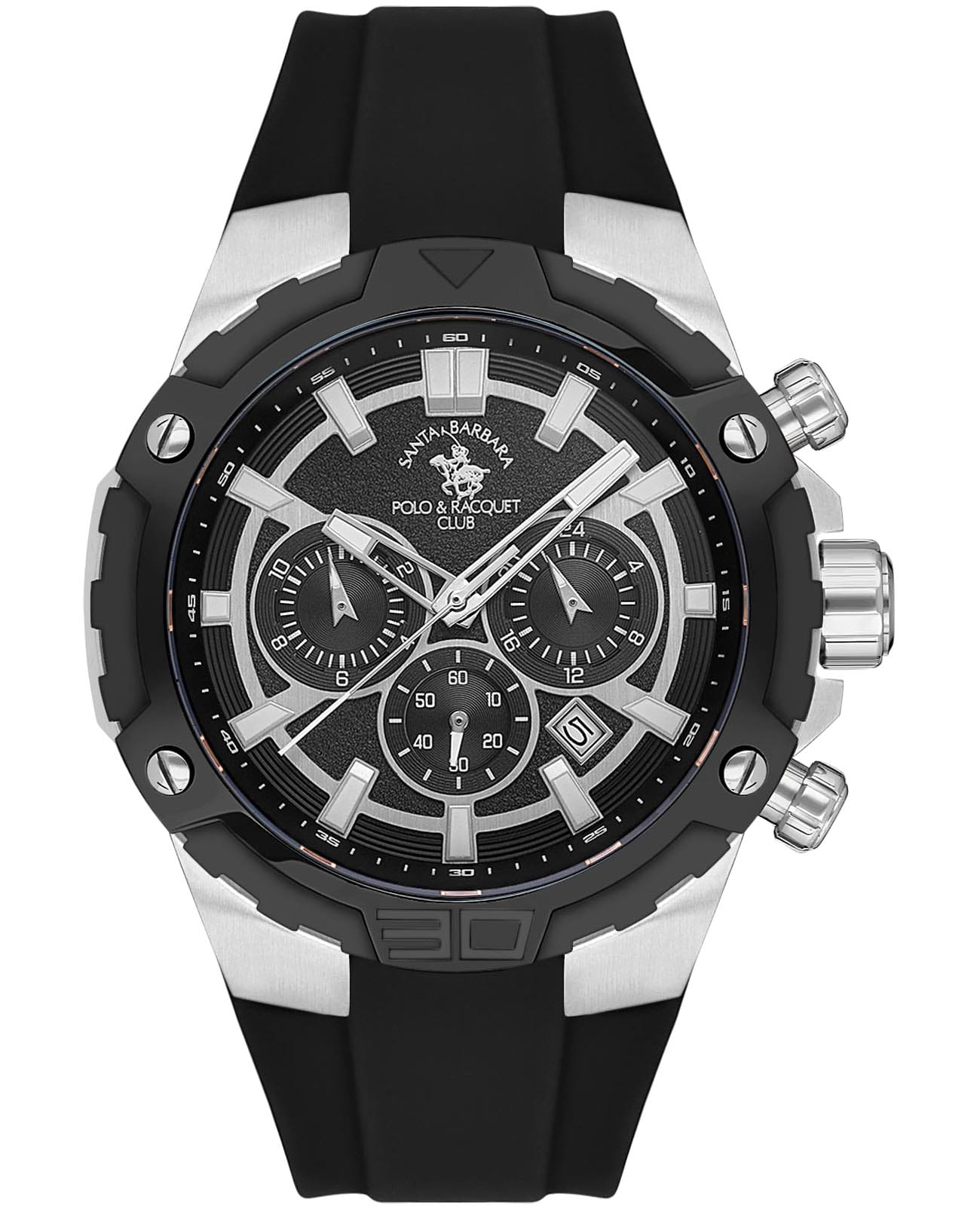 Мужские кварцевые Santa Barbara Polo & Racquet Club SB.5.10002-2 — воплощение элегантности и технического совершенства. Корпус из нержавеющей стали серебристого цвета, диаметром 47 мм, что делает их устойчивыми к внешним воздействиям и придает благородный вид. Стрелки и метки с люминесцентным покрытиемЛюминесцентное покрытиеПозволяет считывать показания времени в темноте. Производители наносят на стрелки, часовые индексы, безель или поверхность циферблата светонакопительный состав, дающий холодное свечение., обеспечивающим хорошую читаемость в темноте. Циферблат защищён минеральным стекломМинеральное стеклоМинеральное стекло представляет собой искусственно выращенный минерал кварца. Такое стекло отличается особой устойчивостью к повреждениям и царапинам. Уступает по некоторым качествам сапфировому стеклу. устойчивое к царапинам и механическим повреждениям. 12-ти и 24-х часовой формат времени. Неподвижный безельБезельВнешний ободок, закрепляющий стекло. В спортивных часах так называется поворотное кольцо с делениями на циферблате, выполняет роль таймера – замеряет отрезки времени на шкале. Неподвижный безель – элемент декора. Однонаправленно вращающийся безель на дайверских часах позволяет фиксировать моменты погружения и выныривания на поверхность. с IP-покрытиемIP-покрытиеМетод ионного напыления. Демонстрирует повышенную устойчивость к истиранию, окислению и химическим веществам. Под воздействием высокого давления и температуры около 1500°C молекулы металла надёжно соединяются с частицами корпуса часов. черного цвета. Окошко даты находится между отметками 4 и 5 часов. Силиконовый ремешок на стандартной застёжке обеспечивает комфортное и безопасное ношение. Рифленая заводная головка с защитой. Водонепроницаемость 100 метров позволит плавать, нырять и заниматься другими водными видами спорта. Идеальный выбор для тех, кто ценит элегантный дизайн и качество.