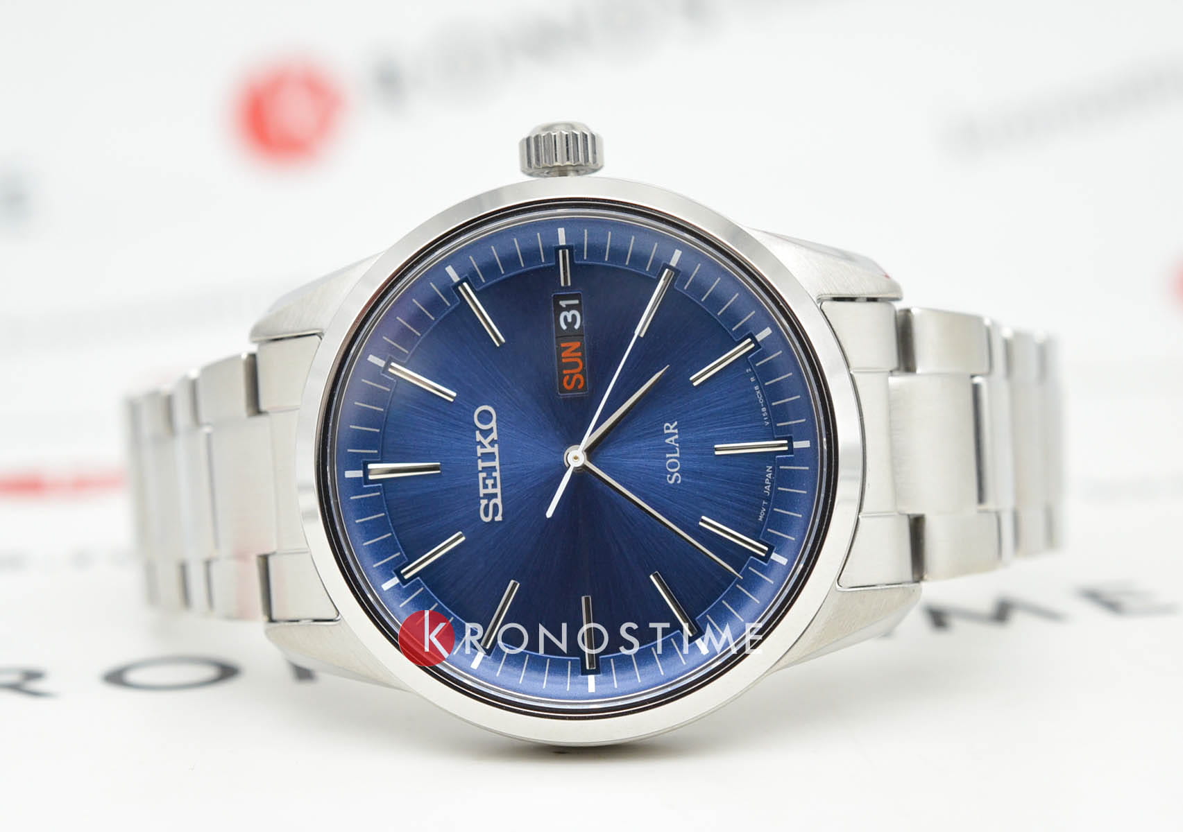Seiko SNE525P1 — стильные мужские часы из коллекции Conceptual Series Dress, выполненные в универсальном классическом дизайне с современным акцентом. Корпус диаметром 41 мм изготовлен из нержавеющей стали с аккуратной сатинированной отделкой, а прочный браслет из того же материала дополнен раскладной застёжкойРаскладная застёжкаТакой тип застёжки используется только на браслетах из металла. Она никогда не раскрывается полностью, происходит разделение на 2 и более частей. Раскладывающая застёжка снизит вероятность потери часов к минимуму., обеспечивающей комфортное и надёжное ношение. В качестве защитного элемента используется минеральное стеклоМинеральное стеклоМинеральное стекло представляет собой искусственно выращенный минерал кварца. Такое стекло отличается особой устойчивостью к повреждениям и царапинам. Уступает по некоторым качествам сапфировому стеклу. Hardlex, обладающее повышенной устойчивостью к повреждениям. Модель оснащена солнечным модулем Tough SolarTough SolarТехнология основана на подзарядке аккумулятора от источника солнечного света, специальная панель улавливает солнечные лучи и преобразует их в энергию для работы часов. Достаточно пары минут нахождения на солнце для функционирования часов в течении суток., аккумулирующим энергию света и обеспечивающим длительную автономную работу без замены батарейки. Циферблат глубокого синего цвета подчёркивает деловой стиль часов и дополнен индикатором даты и дня недели на «3 часах». Тонкие стрелки и метки покрыты люминесцентным покрытиемЛюминесцентное покрытиеПозволяет считывать показания времени в темноте. Производители наносят на стрелки, часовые индексы, безель или поверхность циферблата светонакопительный состав, дающий холодное свечение., что делает показания легко читаемыми даже при слабом освещении. Водозащита до 100 метров позволяет использовать часы в повседневных условиях и при кратковременном контакте с водой.
