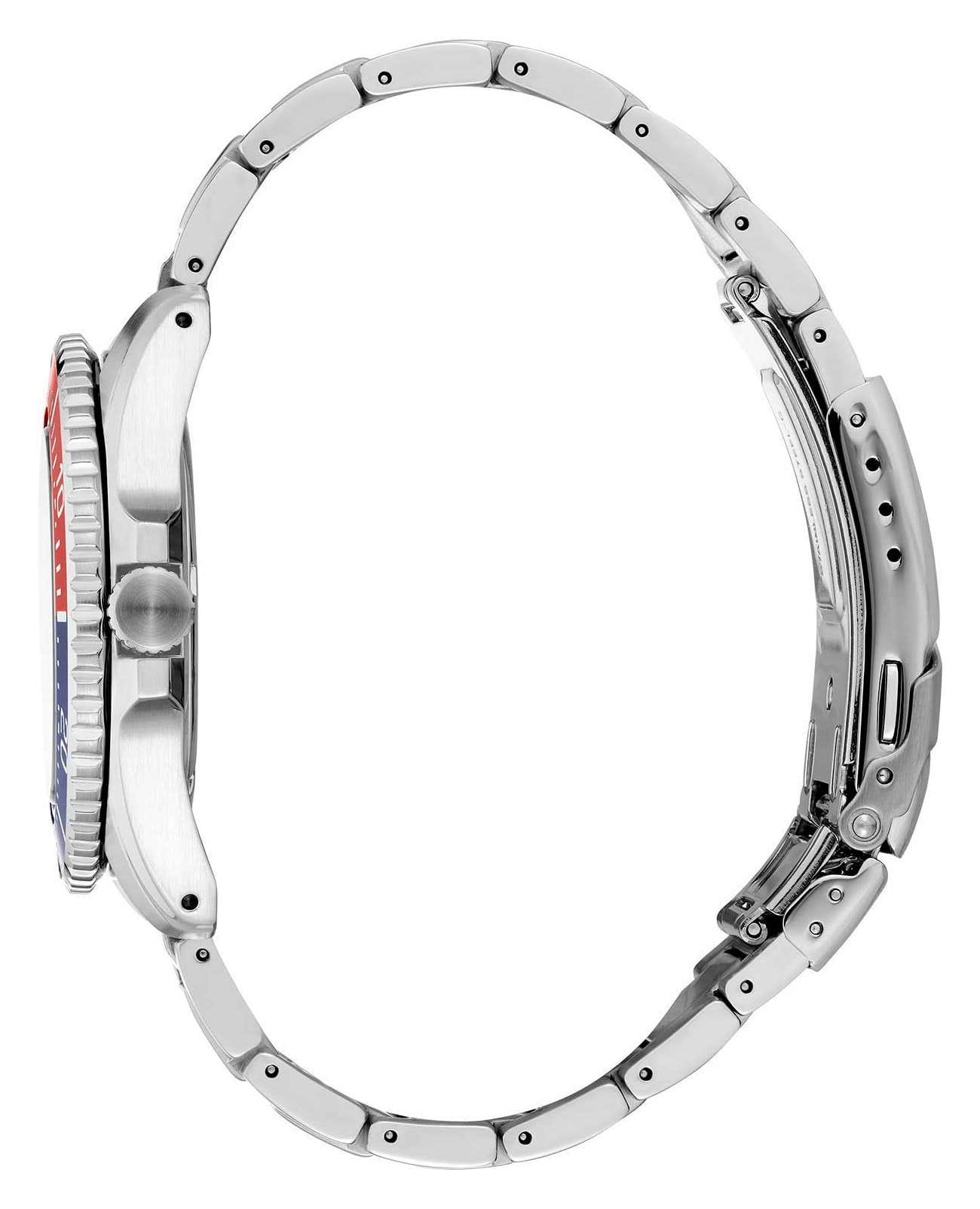 Мужские наручные часы Seiko Prospex SNE591P1 из коллекции Prospex сочетают в себе спортивный дизайн и надежность современных технологий. Модель обладает круглым корпусом диаметром 42,8 мм, изготовленным из нержавеющей стали, что обеспечивает высокую устойчивость к внешним воздействиям . Защита циферблата выполнена с использованием сапфирового стеклаСапфировое стеклоПрочный и надёжный материал из кристалла сапфира синтетического происхождения, характеризующийся особой твёрдостью и устойчивостью к царапинам и повреждениям., устойчивого к появлению царапин и обладающего высокой прозрачностью . БезельБезельВнешний ободок, закрепляющий стекло. В спортивных часах так называется поворотное кольцо с делениями на циферблате, выполняет роль таймера – замеряет отрезки времени на шкале. Неподвижный безель – элемент декора. Однонаправленно вращающийся безель на дайверских часах позволяет фиксировать моменты погружения и выныривания на поверхность. с PVD-покрытиемPVDУльтратонкое покрытие наносится в технике вакуумного напыления, сочетает в себе нитрид титана особой прочности со слоем золота или оксида хрома. Несёт в себе декоративную или защитную функцию.. Часы оснащены системой Solar, которая не требует замены батарейки и обеспечивает запас хода до 10 месяцев при полной зарядке аккумулятора . Кварцевый механизм с калибром V157 гарантирует высокую точность работы, а функция EOLEOLПредставляет собой систему, уведомляющую владельца часов о необходимости замены элемента питания. За 2 недели до полного разряда батарейки секундная стрелка перестаёт ходить чётко и начинает перепрыгивать на 3-4 деления. позволяет контролировать уровень заряда аккумулятора . Циферблат дополнен люминесцентным покрытиемЛюминесцентное покрытиеПозволяет считывать показания времени в темноте. Производители наносят на стрелки, часовые индексы, безель или поверхность циферблата светонакопительный состав, дающий холодное свечение., обеспечивающим видимость в темное время суток. Водонепроницаемость модели достигает 200 метров (WR200), что делает ее подходящей для плавания, ныряния и других водных видов спорта, включая погружение с аквалангом. Браслет выполнен из нержавеющей стали на раскладной застёжкеРаскладная застёжкаТакой тип застёжки используется только на браслетах из металла. Она никогда не раскрывается полностью, происходит разделение на 2 и более частей. Раскладывающая застёжка снизит вероятность потери часов к минимуму., что обеспечивает комфортное ношение и долговечность.
