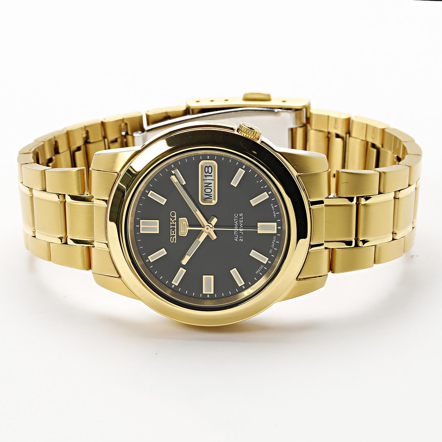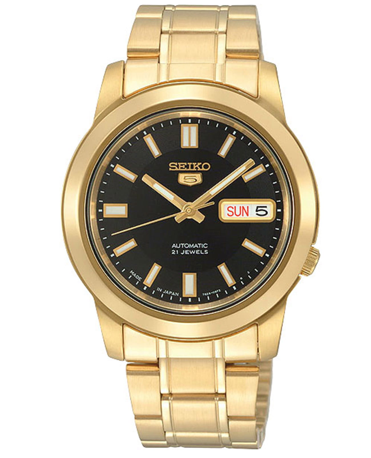 Мужские японские часы с запасом хода 41 час Seiko 5 Regular SNKK22K1 с минеральным стекломМинеральное стеклоМинеральное стекло представляет собой искусственно выращенный минерал кварца. Такое стекло отличается особой устойчивостью к повреждениям и царапинам. Уступает по некоторым качествам сапфировому стеклу., механический механизм (автоматический калибр) с высокой точностью. Класс водозащиты: 30 метров, позволит защитить корпус от случайных брызг или капель дождя. Корпус и браслет часов изготовлен из стали с PVD-покрытиемPVDУльтратонкое покрытие наносится в технике вакуумного напыления, сочетает в себе нитрид титана особой прочности со слоем золота или оксида хрома. Несёт в себе декоративную или защитную функцию.. Браслет на раскладной застёжкеРаскладная застёжкаТакой тип застёжки используется только на браслетах из металла. Она никогда не раскрывается полностью, происходит разделение на 2 и более частей. Раскладывающая застёжка снизит вероятность потери часов к минимуму. с кнопками. Окошко даты и дня недели находятся в положении 3 часа. Заводная коронка находится на «4 часах». Стрелки и метки с люминесцентным покрытиемЛюминесцентное покрытиеПозволяет считывать показания времени в темноте. Производители наносят на стрелки, часовые индексы, безель или поверхность циферблата светонакопительный состав, дающий холодное свечение..