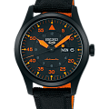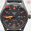 Seiko 5 Sports SRPH33K1 — мужская автоматическая модель из спортивной коллекции Seiko 5, выполненная в стиле авиационных часов. Корпус диаметром 39 мм изготовлен из нержавеющей стали с PVD-покрытиемPVDУльтратонкое покрытие наносится в технике вакуумного напыления, сочетает в себе нитрид титана особой прочности со слоем золота или оксида хрома. Несёт в себе декоративную или защитную функцию. и дополнен текстильным ремешком с классической застёжкой, подчёркивающим универсальность модели. Защитную функцию выполняет минеральное стеклоМинеральное стеклоМинеральное стекло представляет собой искусственно выращенный минерал кварца. Такое стекло отличается особой устойчивостью к повреждениям и царапинам. Уступает по некоторым качествам сапфировому стеклу. Hardlex, устойчивое к механическим повреждениям. В основе лежит надёжный автоматический калибр 4R36 с функциями часов, минут, секунд, даты и дня недели, возможностью ручного завода и стоп-секундой. Водозащита составляет 100 м, что делает модель подходящей для плавания и повседневного использования. Чёрный циферблат с ярко-оранжевыми акцентами оформлен в авиационном стиле: крупные минутные деления по внешней шкале и часовые метки во внутреннем круге. Стрелки и индексы покрыты люминесцентным покрытиемЛюминесцентное покрытиеПозволяет считывать показания времени в темноте. Производители наносят на стрелки, часовые индексы, безель или поверхность циферблата светонакопительный состав, дающий холодное свечение., обеспечивающим отличную читаемость даже в темноте.