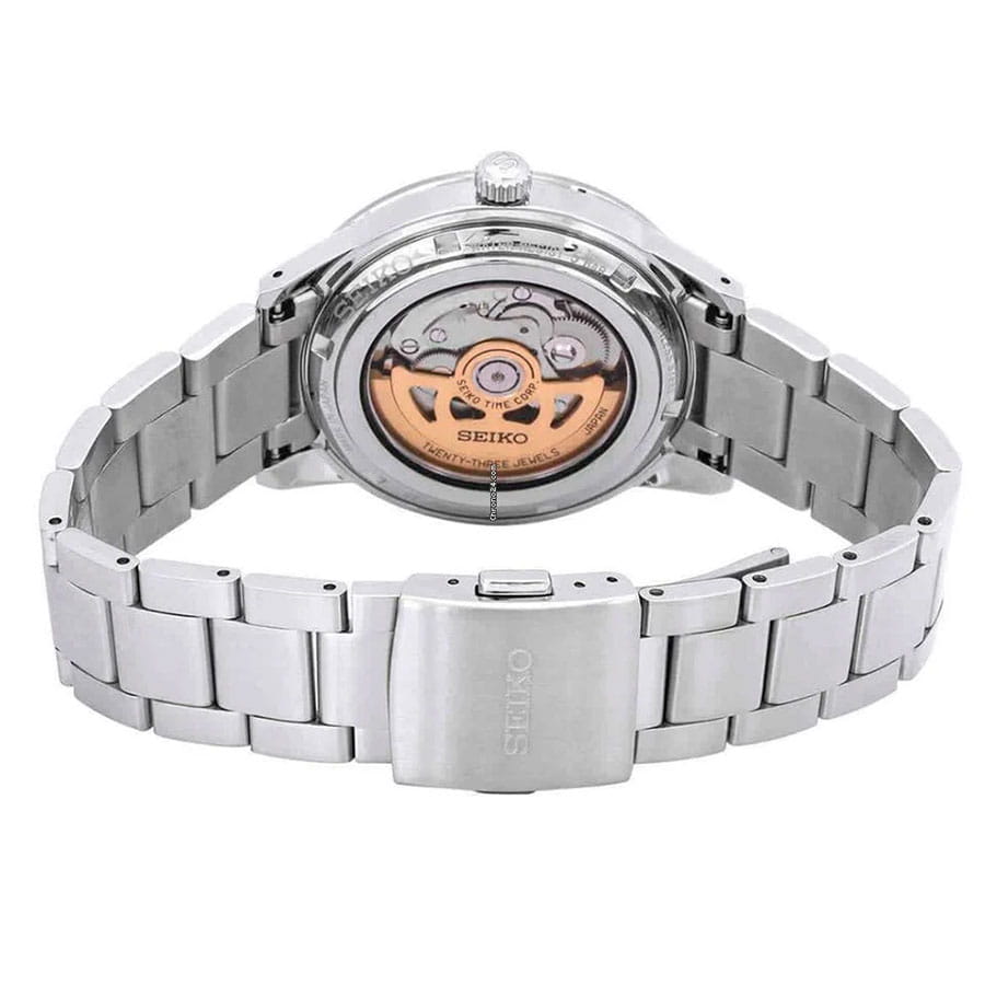 Мужские наручные часы Seiko SRPH93J1 из коллекции Presage Style 60s сочетают в себе классический дизайн и надежность современных технологий. Модель обладает круглым корпусом диаметром 40,8 мм, изготовленным из нержавеющей стали, что обеспечивает высокую устойчивость к внешним воздействиям . Толщина корпуса составляет 12 мм, а для защиты используется минеральное стеклоМинеральное стеклоМинеральное стекло представляет собой искусственно выращенный минерал кварца. Такое стекло отличается особой устойчивостью к повреждениям и царапинам. Уступает по некоторым качествам сапфировому стеклу. Hardlex Crystal, обеспечивающее прочную защиту от царапин . БезельБезельВнешний ободок, закрепляющий стекло. В спортивных часах так называется поворотное кольцо с делениями на циферблате, выполняет роль таймера – замеряет отрезки времени на шкале. Неподвижный безель – элемент декора. Однонаправленно вращающийся безель на дайверских часах позволяет фиксировать моменты погружения и выныривания на поверхность. с PVD-покрытиемPVDУльтратонкое покрытие наносится в технике вакуумного напыления, сочетает в себе нитрид титана особой прочности со слоем золота или оксида хрома. Несёт в себе декоративную или защитную функцию.. Браслет также выполнен из нержавеющей стали с раскладной застежкойРаскладная застёжкаТакой тип застёжки используется только на браслетах из металла. Она никогда не раскрывается полностью, происходит разделение на 2 и более частей. Раскладывающая застёжка снизит вероятность потери часов к минимуму., гарантирующей комфортное ношение . Циферблат бежевого цвета украшен текстурой, которая подчеркивает элегантный стиль модели. Часы оснащены функцией отображения даты на позиции «3 часа» . Модель работает на автоматическом механизме с калибром 4R35, который включает 23 камня и обладает запасом хода до 41 часа . Водонепроницаемость составляет WR 50, что позволяет защитить корпус от случайных брызг и кратковременного контакта с водой . Вдохновленные культурой 1960-х годов, эти часы демонстрируют уникальный стиль и внимание к деталям, сохраняя при этом практичность для повседневного использования.