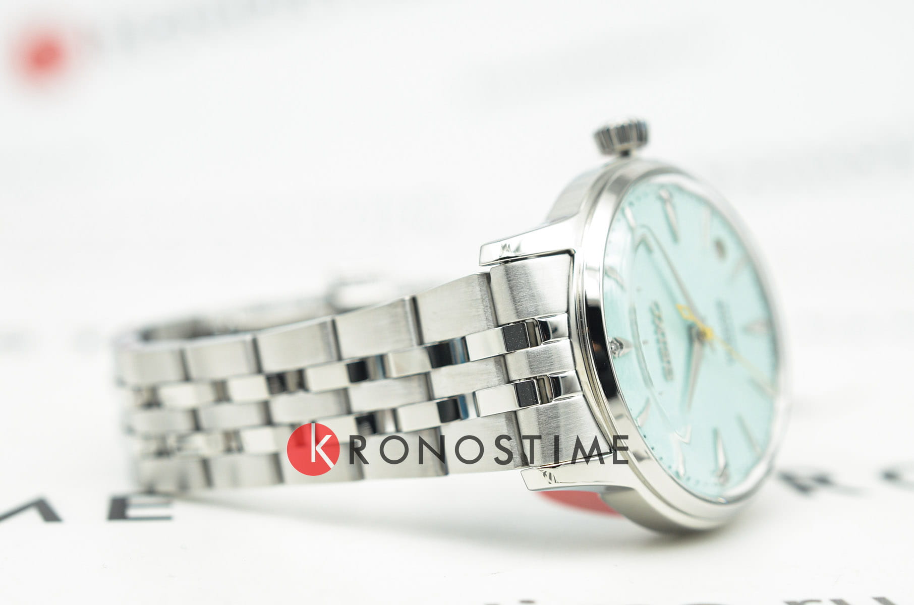 Модель Seiko Presage Cocktail Time SRPL63 вдохновлена свежестью японского коктейля Frozen Sky Diving. Часы отличаются циферблатом с четырьмя метками из драгоценных камней, что придаёт им особую роскошь и изысканность. Корпус диаметром 40 мм изготовлен из нержавеющей стали, а стекло выполнено по технологии Hardlex — это минеральное стеклоМинеральное стеклоМинеральное стекло представляет собой искусственно выращенный минерал кварца. Такое стекло отличается особой устойчивостью к повреждениям и царапинам. Уступает по некоторым качествам сапфировому стеклу. повышенной прочности, устойчивое к мелким механическим повреждениям. Механизм — автоматический калибр 4R35, обеспечивающий надёжную работу часов и запас хода до 41 часа. Функция отображения даты добавляет модели практичности. Часы водонепроницаемы до 5 атмосфер, что соответствует защите от случайных капель дождя. Браслет и застёжка выполнены из стали, оснащены раскладной застёжкойРаскладная застёжкаТакой тип застёжки используется только на браслетах из металла. Она никогда не раскрывается полностью, происходит разделение на 2 и более частей. Раскладывающая застёжка снизит вероятность потери часов к минимуму., обеспечивающей удобство ношения. Дизайн часов дополнен классическим сочетанием материалов и цветов, что делает их универсальным аксессуаром для повседневного и торжественного образа. Модель 2025 года имеет современный, лаконичный внешний вид, сохраняя при этом традиционные элементы часового мастерства Seiko.