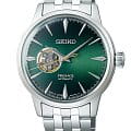 Мужские наручные часы Seiko SSA441J1 из коллекции Presage Cocktail Time сочетают в себе классический дизайн и надежность современных технологий. Модель обладает круглым корпусом диаметром 40,5 мм, изготовленным из нержавеющей стали, что обеспечивает высокую устойчивость к внешним воздействиям . Толщина корпуса составляет 11,8 мм, а для защиты используется минеральное стеклоМинеральное стеклоМинеральное стекло представляет собой искусственно выращенный минерал кварца. Такое стекло отличается особой устойчивостью к повреждениям и царапинам. Уступает по некоторым качествам сапфировому стеклу. Hardlex Crystal, обеспечивающее прочную защиту от царапин . Браслет также выполнен из нержавеющей стали с раскладной застежкойРаскладная застёжкаТакой тип застёжки используется только на браслетах из металла. Она никогда не раскрывается полностью, происходит разделение на 2 и более частей. Раскладывающая застёжка снизит вероятность потери часов к минимуму., гарантирующей комфортное ношение . Циферблат зеленого цвета украшен текстурой, которая подчеркивает элегантный стиль модели. асы работают на автоматическом механизме с калибром 4R38, который включает 23 камня и обладает запасом хода до 41 часа. Водонепроницаемость составляет WR 50, что позволяет защитить корпус от случайных брызг и кратковременного контакта с водой . Вдохновленные культурой японских коктейлей, эти часы демонстрируют уникальный стиль и внимание к деталям.