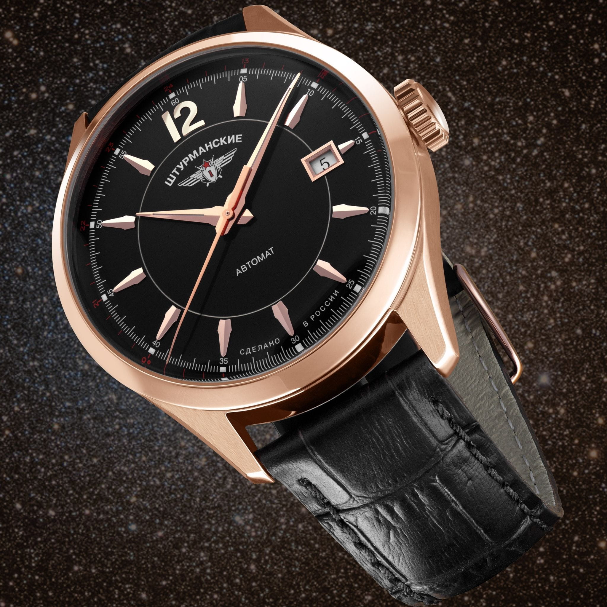 Лимитированные мужские российские механические часы Штурманские Открытый Космос 2416/1869998, механический механизм (автоматический калибр) с высокой точностью. Минеральное стеклоМинеральное стеклоМинеральное стекло представляет собой искусственно выращенный минерал кварца. Такое стекло отличается особой устойчивостью к повреждениям и царапинам. Уступает по некоторым качествам сапфировому стеклу. устойчивое к появлению царапин, обладающее высокой прозрачностью. Класс водозащиты: 50 метров, позволит защитить корпус от случайных брызг или капель дождя. Корпус часов изготовлен из стали с PVD-покрытиемPVDУльтратонкое покрытие наносится в технике вакуумного напыления, сочетает в себе нитрид титана особой прочности со слоем золота или оксида хрома. Несёт в себе декоративную или защитную функцию.. Кожаный ремешок с раскладной застёжкойРаскладная застёжкаТакой тип застёжки используется только на браслетах из металла. Она никогда не раскрывается полностью, происходит разделение на 2 и более частей. Раскладывающая застёжка снизит вероятность потери часов к минимуму.. Стрелки и метки с люминесцентным покрытиемЛюминесцентное покрытиеПозволяет считывать показания времени в темноте. Производители наносят на стрелки, часовые индексы, безель или поверхность циферблата светонакопительный состав, дающий холодное свечение.. Окошко даты находится в положении 3 часа.