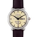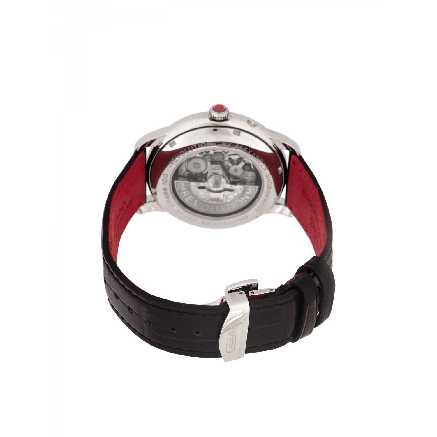 Российские механические часы с автоподзаводом Слава Революция 2600270/300-2427 созданы для тех, кто ценит стиль и надежность. Эта модель является плодом сотрудничества Часовой компании «Слава» и знаменитого мастера Александра Шорохова, который известен своим вкладом в возрождение российского часового мастерства и продвижение культуры в мире. Эти часы выполнены в соответствии с эскизами мастера, с использованием революционных символов — серпа и молота. Часы Слава «Революция» обладают механизмом с автоподзаводом «Слава 2427», украшенным ручной гравировкой, который можно наблюдать через прозрачную заднюю крышку. Этот механизм обеспечивает надежность и точность, а также добавляет элемент эксклюзивности. Корпус часов выполнен из стали и имеет серебристый оттенок, который гармонично сочетается с бежевым циферблатом. Диаметр корпуса составляет 44 мм, а толщина — 14,5 мм, что делает часы выразительными и комфортными для носки. Сапфировое стеклоСапфировое стеклоПрочный и надёжный материал из кристалла сапфира синтетического происхождения, характеризующийся особой твёрдостью и устойчивостью к царапинам и повреждениям. защищает циферблат от царапин и обеспечивает долгий срок службы. Часы оснащены функцией двойного календаря, который отображает дату, что добавляет практичности в повседневной носке. Натуральный кожаный ремешок с застежкой «бабочка»Застёжка "бабочка"Такой вид застёжки дополняется предохранителями, помогающими избежать случайного раскрытия браслета. Обладают изящным исполнением. завершают образ, обеспечивая удобство и стиль. С водонепроницаемостью до 100 метров эти часы подходят для активного образа жизни, позволяя не беспокоиться о случайных контактах с водой, таких как плавание или дождь. Слава «Революция» выпускаются ограниченной серией — в трех видах по 100 штук.