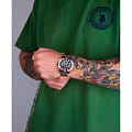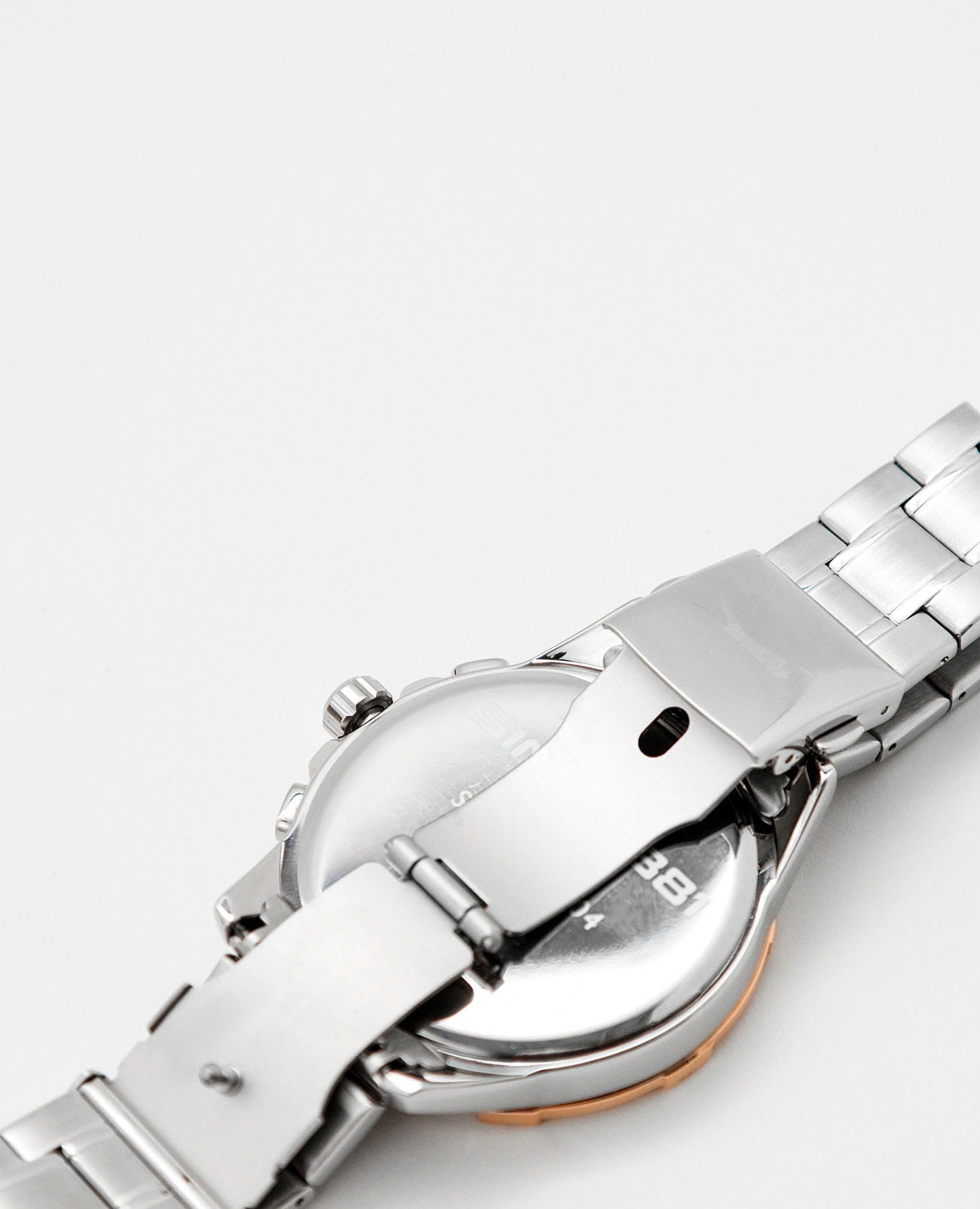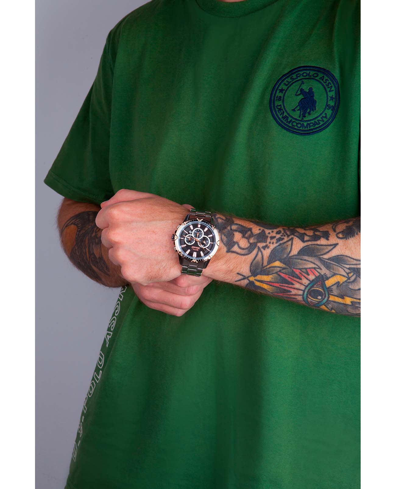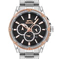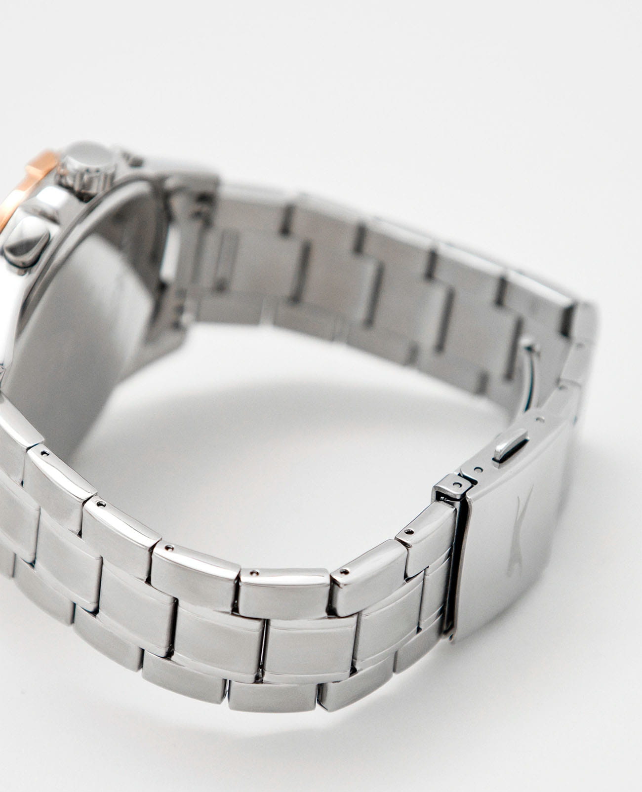 Мужские наручные часы Slazenger SL.09.2035.2.04 сочетают в себе классический дизайн и функциональность для повседневного использования. Модель обладает круглым корпусом диаметром 46 мм, изготовленным из металла, что придает изделию привлекательный внешний вид и обеспечивает устойчивость к царапинам. Браслет выполнен из суперметалла оснащен раскладной застежкойРаскладной замокДанный вариант застежки используется только на часах с металлическим браслетом. Отличительная особенность такого крепления в том, что длина браслета становится универсальной и вы можете самостоятельно отрегулировать нужный вам размер – застежка просто двигается по браслету часов., гарантирующей комфортное ношение и безопасность. БезельБезельВнешний ободок, закрепляющий стекло. В спортивных часах так называется поворотное кольцо с делениями на циферблате, выполняет роль таймера – замеряет отрезки времени на шкале. Неподвижный безель – элемент декора. Однонаправленно вращающийся безель на дайверских часах позволяет фиксировать моменты погружения и выныривания на поверхность. с IP-покрытиемIP-покрытиеМетод ионного напыления. Демонстрирует повышенную устойчивость к истиранию, окислению и химическим веществам. Под воздействием высокого давления и температуры около 1500°C молекулы металла надёжно соединяются с частицами корпуса часов.. Циферблат представлен в черном цвете и дополнен индикаторами даты, дня недели, а также 24-часовым форматом времени, что делает модель практичной для ежедневного использования. Для защиты использовано минеральное стеклоМинеральное стеклоМинеральное стекло представляет собой искусственно выращенный минерал кварца. Такое стекло отличается особой устойчивостью к повреждениям и царапинам. Уступает по некоторым качествам сапфировому стеклу., обеспечивающее надежную защиту от механических повреждений. Часы работают на японском кварцевом механизме, который обеспечивает высокую точность хода без необходимости подзаводки. Функция второго часового поясаВторой часовой поясФункция, позволяющая отображать время двух часовых поясов одновременно. позволяет следить за временем в разных регионах мира, делая модель удобной для путешествий. Водонепроницаемость часов составляет 30 метров (WR30), что позволяет использовать их при легком контакте с водой, например, во время мытья рук или попадания брызг, однако не рекомендуется для плавания или дайвинга.