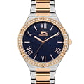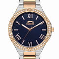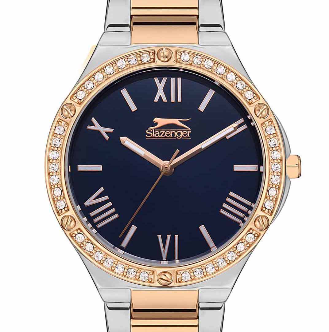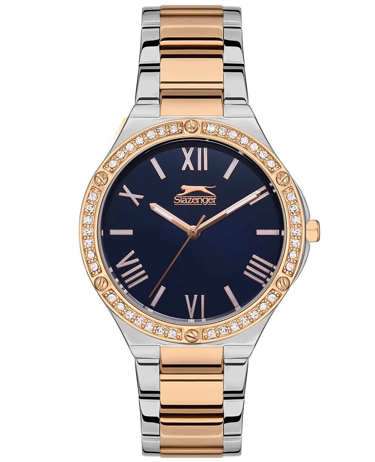 Женские часы Slazenger SL.09.2141.3.05 - это изысканный аксессуар, сочетающий в себе элегантность и функциональность. Модель оснащена надежным кварцевым механизмом и обладает водозащитой 3 АТМ, что позволяет не беспокоиться о случайных брызгах. Корпус часов диаметром 35 мм и толщиной 9 мм выполнен из прочного суперметалла, а циферблат защищен минеральным стекломМинеральное стеклоМинеральное стекло представляет собой искусственно выращенный минерал кварца. Такое стекло отличается особой устойчивостью к повреждениям и царапинам. Уступает по некоторым качествам сапфировому стеклу.. БезельБезельВнешний ободок, закрепляющий стекло. В спортивных часах так называется поворотное кольцо с делениями на циферблате, выполняет роль таймера – замеряет отрезки времени на шкале. Неподвижный безель – элемент декора. Однонаправленно вращающийся безель на дайверских часах позволяет фиксировать моменты погружения и выныривания на поверхность. инкрустирован фианитами.  Браслет, также изготовленный из суперметалла с частичным IP-покрытиемIP-покрытиеМетод ионного напыления. Демонстрирует повышенную устойчивость к истиранию, окислению и химическим веществам. Под воздействием высокого давления и температуры около 1500°C молекулы металла надёжно соединяются с частицами корпуса часов., имеет раскладную застёжкуРаскладная застёжкаТакой тип застёжки используется только на браслетах из металла. Она никогда не раскрывается полностью, происходит разделение на 2 и более частей. Раскладывающая застёжка снизит вероятность потери часов к минимуму., что подчеркивает современный стиль и позволяет легко снимать часы. Особую привлекательность часам придают декоративные элементы в виде фианитов. Весом всего 90 грамм, эти часы станут легким и стильным дополнением к любому образу.