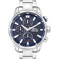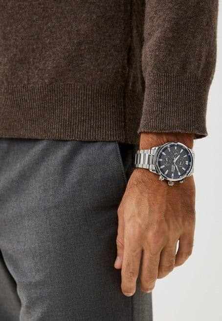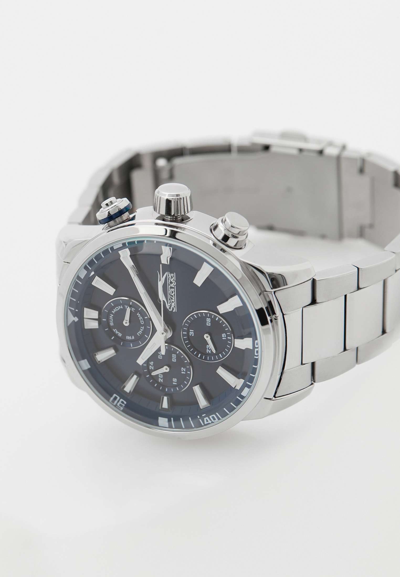 Часы Slazenger SL.09.2272.2.02 – это стильный аксессуар, сочетающий в себе современный дизайн и продуманную функциональность. Модель оснащена точным кварцевым механизмом, который гарантирует стабильную работу и легкость в использовании. Корпус и браслет выполнены из суперметалла — инновационного сплава на основе меди с пониженным содержанием цинка и никеля, обладающего высокой прочностью и устойчивостью к износу благодаря особой технологии покрытия. Элегантный синий циферблат защищён надёжным минеральным стекломМинеральное стеклоМинеральное стекло представляет собой искусственно выращенный минерал кварца. Такое стекло отличается особой устойчивостью к повреждениям и царапинам. Уступает по некоторым качествам сапфировому стеклу., устойчивым к царапинам и повреждениям. На циферблате размещены отдельные индикаторы: 24-часовой указатель времени, а также дополнительные циферблаты для отображения даты и дня недели, что делает модель максимально информативной и удобной в повседневном использовании. Водозащита 5 АТМ (5 бар) надёжно защищает механизм от брызг и дождя, а диаметр корпуса 45 мм и толщина 13 мм обеспечивают солидный внешний вид и комфортную посадку на запястье. Стальной браслет с раскладной застёжкойРаскладная застёжкаТакой тип застёжки используется только на браслетах из металла. Она никогда не раскрывается полностью, происходит разделение на 2 и более частей. Раскладывающая застёжка снизит вероятность потери часов к минимуму. обеспечивает комфортную посадку. Стрелки с люминесцентным покрытиемЛюминесцентное покрытиеПозволяет считывать показания времени в темноте. Производители наносят на стрелки, часовые индексы, безель или поверхность циферблата светонакопительный состав, дающий холодное свечение. удобно подсвечиваются в темноте после зарядки на свету.  Часы подойдут как для ежедневного ношения, так и для особых случаев, а универсальный дизайн подчеркнёт индивидуальность и вкус владельца.