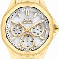 Часы Slazenger SL.09.2290.4.08 — это сочетание современного дизайна и функциональности, идеально подходящее для тех, кто ценит стиль и элегантность. Корпус и браслет выполнены из прочного суперметалла с золотистым IP-покрытиемIP-покрытиеМетод ионного напыления. Демонстрирует повышенную устойчивость к истиранию, окислению и химическим веществам. Под воздействием высокого давления и температуры около 1500°C молекулы металла надёжно соединяются с частицами корпуса часов., что придаёт модели солидный и эффектный вид. Белый циферблат с лаконичными отметками, кристаллами и фирменным логотипом защищён устойчивым к царапинам минеральным стекломМинеральное стеклоМинеральное стекло представляет собой искусственно выращенный минерал кварца. Такое стекло отличается особой устойчивостью к повреждениям и царапинам. Уступает по некоторым качествам сапфировому стеклу.. Дополнительные функции включают отображение даты и дня недели, а также 12- и 24-часовой формат времени на отдельных мини-циферблатах, что делает использование часов максимально удобным. Заводная головка оснащена защитой, а надёжная раскладная застёжкаРаскладная застёжкаТакой тип застёжки используется только на браслетах из металла. Она никогда не раскрывается полностью, происходит разделение на 2 и более частей. Раскладывающая застёжка снизит вероятность потери часов к минимуму. обеспечивает комфортную посадку на запястье. Особое внимание привлекает восьмигранный безельБезельВнешний ободок, закрепляющий стекло. В спортивных часах так называется поворотное кольцо с делениями на циферблате, выполняет роль таймера – замеряет отрезки времени на шкале. Неподвижный безель – элемент декора. Однонаправленно вращающийся безель на дайверских часах позволяет фиксировать моменты погружения и выныривания на поверхность.. Циферблат оснащён люминесцентным покрытиемЛюминесцентное покрытиеПозволяет считывать показания времени в темноте. Производители наносят на стрелки, часовые индексы, безель или поверхность циферблата светонакопительный состав, дающий холодное свечение. стрелок и меток, что позволяет легко определять время даже в условиях плохой освещенности. Водозащита 30WR позволяет не беспокоиться о случайных брызгах и дождевых каплях. Диаметр корпуса составляет 36 мм, толщина — 12 мм, вес — 97 г, благодаря чему часы выглядят внушительно и подчёркивают индивидуальный стиль владельца. Эта модель станет отличным акцентом в вашем образе и подчеркнёт вашу уверенность в любой ситуации.