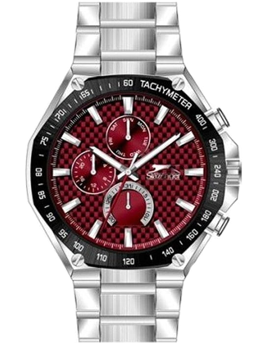 Мужские кварцевые часы Slazenger SL.09.2325.2.05 — это выразительный и функциональный аксессуар, сочетающий стиль, прочность и насыщенную комплектацию. Корпус и браслет выполнены из суперметалла, а циферблат оформлен в бордовых тонах. Циферблат защищён минеральным стекломМинеральное стеклоМинеральное стекло представляет собой искусственно выращенный минерал кварца. Такое стекло отличается особой устойчивостью к повреждениям и царапинам. Уступает по некоторым качествам сапфировому стеклу. и дополнен вынесенными малыми циферблатами для индикации дня недели, даты и времени в 24-часовом формате. БезельБезельВнешний ободок, закрепляющий стекло. В спортивных часах так называется поворотное кольцо с делениями на циферблате, выполняет роль таймера – замеряет отрезки времени на шкале. Неподвижный безель – элемент декора. Однонаправленно вращающийся безель на дайверских часах позволяет фиксировать моменты погружения и выныривания на поверхность. с IP-покрытиемIP-покрытиеМетод ионного напыления. Демонстрирует повышенную устойчивость к истиранию, окислению и химическим веществам. Под воздействием высокого давления и температуры около 1500°C молекулы металла надёжно соединяются с частицами корпуса часов. дополнен тахиметромТахиметрРазмеченная шкала, располагается на ободке или безеле часов. Тахиметр позволяет рассчитать скорость на определённом участке пути, расстояние измеряется в километрах или милях.. Стрелки и метки оснащены люминесцентным покрытиемЛюминесцентное покрытиеПозволяет считывать показания времени в темноте. Производители наносят на стрелки, часовые индексы, безель или поверхность циферблата светонакопительный состав, дающий холодное свечение., обеспечивающим хорошую читаемость в темноте. Браслет из суперметалла фиксируется на раскладной застёжкеРаскладная застёжкаТакой тип застёжки используется только на браслетах из металла. Она никогда не раскрывается полностью, происходит разделение на 2 и более частей. Раскладывающая застёжка снизит вероятность потери часов к минимуму., обеспечивая удобство и безопасность ношения. Водонепроницаемость 50 м позволяет использовать часы в повседневных условиях, защищая от случайных брызг и капель дождя. Модель подчёркивает индивидуальность владельца и идеально подходит как для повседневного, так и для делового образа.