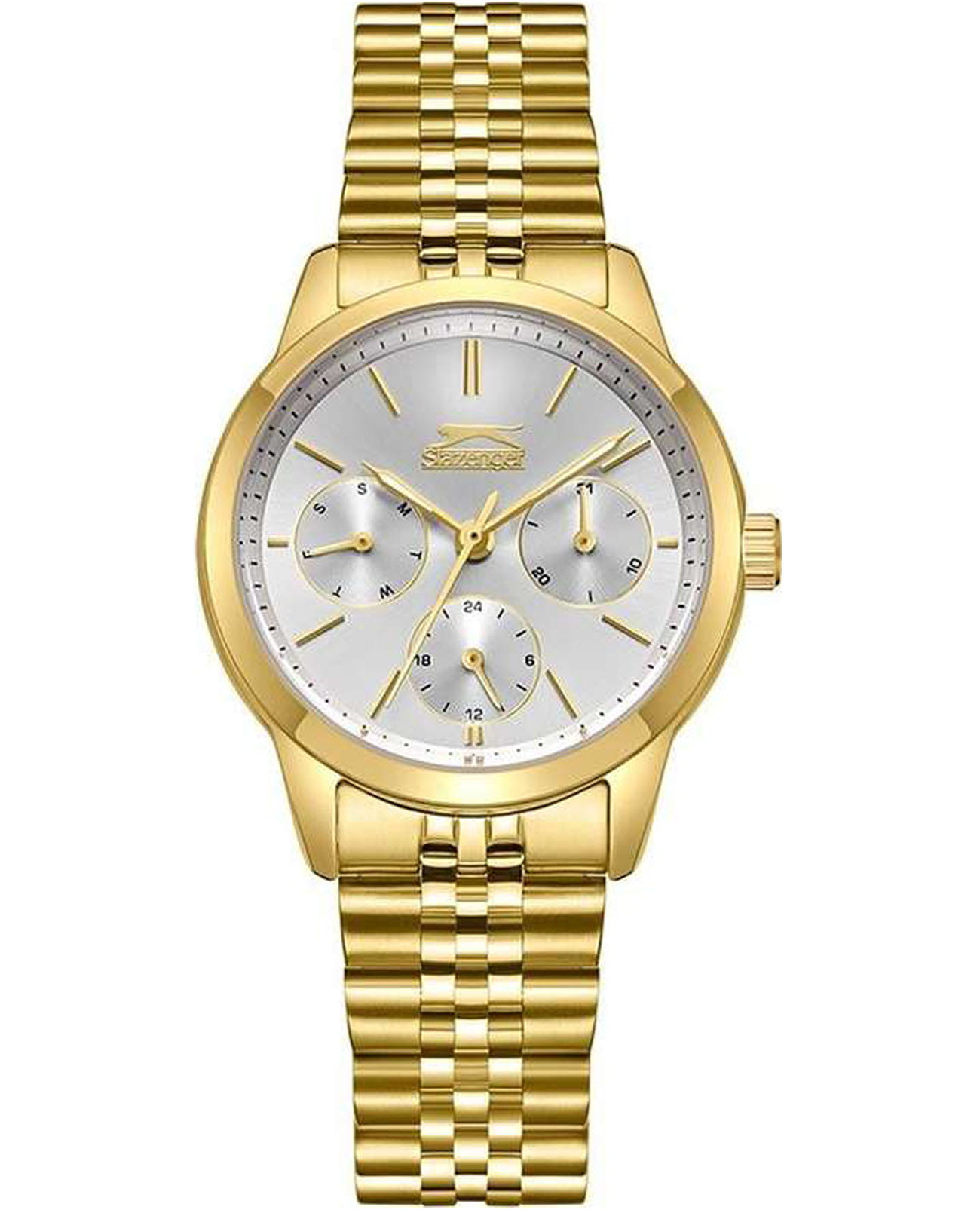Женские элегантные наручные часы Slazenger SL.09.2336.4.06 сочетают в себе современный стиль и функциональность. Корпус выполнен из суперметалла с IP-покрытиемIP-покрытиеМетод ионного напыления. Демонстрирует повышенную устойчивость к истиранию, окислению и химическим веществам. Под воздействием высокого давления и температуры около 1500°C молекулы металла надёжно соединяются с частицами корпуса часов., придающий модели дополнительную прочность и элегантный внешний вид. Изысканный циферблат защищён минеральным стекломМинеральное стеклоМинеральное стекло представляет собой искусственно выращенный минерал кварца. Такое стекло отличается особой устойчивостью к повреждениям и царапинам. Уступает по некоторым качествам сапфировому стеклу., устойчивым к царапинам и повреждениям. Часы оснащены дополнительными циферблатами, отображающими дату, день недели и 24-часовой формат времени, что добавляет практичности в повседневном использовании. Водонепроницаемость 3 АТМ позволяет использовать часы в повседневных условиях — при мытье рук или под лёгким дождём. Браслет из суперметалла с IP-покрытиемIP-покрытиеМетод ионного напыления. Демонстрирует повышенную устойчивость к истиранию, окислению и химическим веществам. Под воздействием высокого давления и температуры около 1500°C молекулы металла надёжно соединяются с частицами корпуса часов. и с раскладной застёжкойРаскладная застёжкаТакой тип застёжки используется только на браслетах из металла. Она никогда не раскрывается полностью, происходит разделение на 2 и более частей. Раскладывающая застёжка снизит вероятность потери часов к минимуму. обеспечивает надёжную фиксацию и комфорт при ношении. Эта модель идеально подходит для женщин, ценящих стиль, функциональность и надёжность в одном аксессуаре.