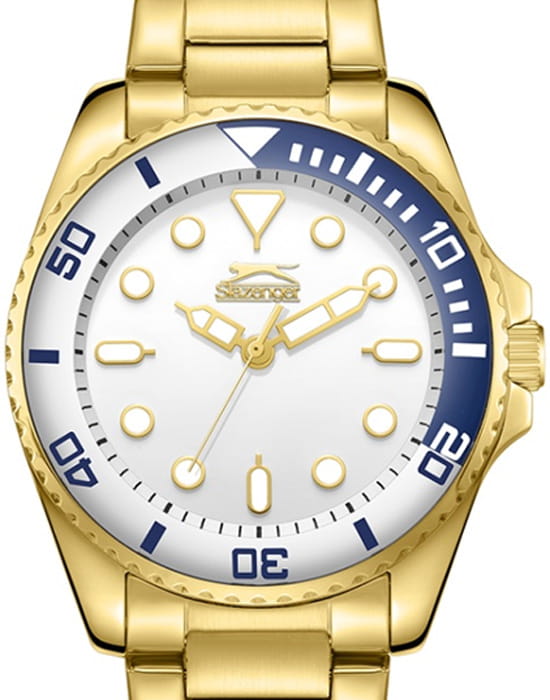 Slazenger SL.09.2352.1.02 — стильные мужские часы, сочетающие современный дизайн и функциональность. Корпус выполнен из суперметалла с PVD-покрытиемPVDУльтратонкое покрытие наносится в технике вакуумного напыления, сочетает в себе нитрид титана особой прочности со слоем золота или оксида хрома. Несёт в себе декоративную или защитную функцию., обеспечивающей прочность и долговечность. Минеральное стеклоМинеральное стеклоМинеральное стекло представляет собой искусственно выращенный минерал кварца. Такое стекло отличается особой устойчивостью к повреждениям и царапинам. Уступает по некоторым качествам сапфировому стеклу. защищает циферблат от царапин и гарантирует превосходную читаемость.БезельБезельВнешний ободок, закрепляющий стекло. В спортивных часах так называется поворотное кольцо с делениями на циферблате, выполняет роль таймера – замеряет отрезки времени на шкале. Неподвижный безель – элемент декора. Однонаправленно вращающийся безель на дайверских часах позволяет фиксировать моменты погружения и выныривания на поверхность. с PVD-покрытиемPVDУльтратонкое покрытие наносится в технике вакуумного напыления, сочетает в себе нитрид титана особой прочности со слоем золота или оксида хрома. Несёт в себе декоративную или защитную функцию.. Циферблат с контрастными метками и стрелками подчёркивает элегантный стиль модели. Браслет из суперметалла с PVD-покрытиемPVDУльтратонкое покрытие наносится в технике вакуумного напыления, сочетает в себе нитрид титана особой прочности со слоем золота или оксида хрома. Несёт в себе декоративную или защитную функцию.. обеспечивает комфортное ношение и надёжную фиксацию на запястье. Функциональность дополняется индикацией даты, повышая удобство использования. Водонепроницаемость 50 метров делает модель устойчивой к случайным брызгам, идеально подходя для повседневного использования.
