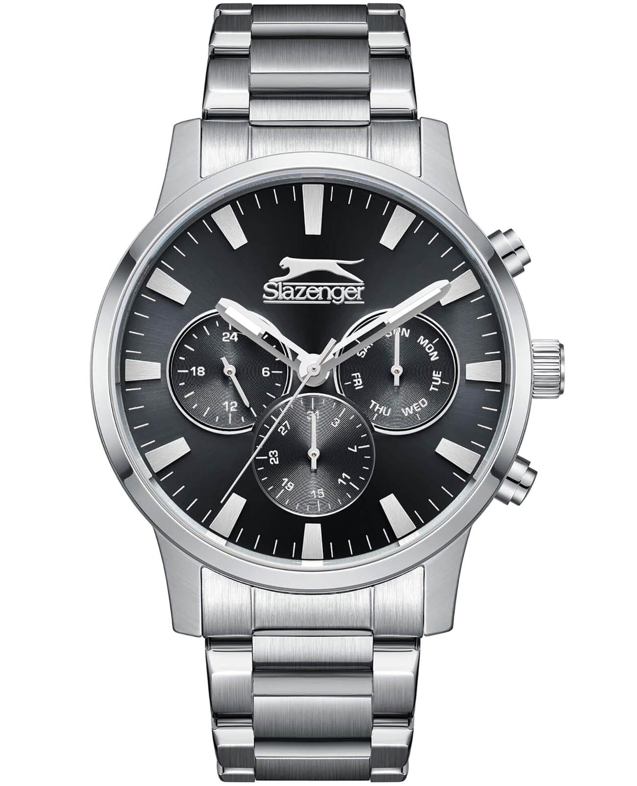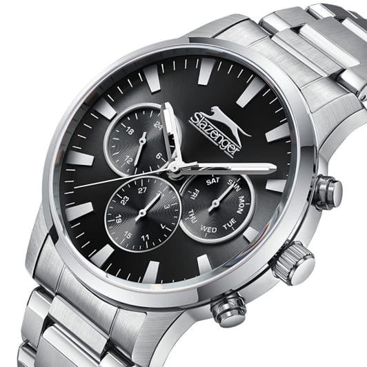 Мужские кварцевые часы Slazenger SL.09.2356.2.03 – идеальное сочетание классического дизайна и современных технологий, созданное для уверенных в себе мужчин. Корпус выполнен из нержавеющей стали серебристого цвета, диаметром 44 мм и толщиной 13 мм, подчёркивает надежность модели и делает их идеальным аксессуаром для любой ситуации – будь то деловая встреча или повседневные выходы. Циферблат надёжно защищён минеральным стекломМинеральное стеклоМинеральное стекло представляет собой искусственно выращенный минерал кварца. Такое стекло отличается особой устойчивостью к повреждениям и царапинам. Уступает по некоторым качествам сапфировому стеклу., которое устойчиво к механическим повреждениям и сохраняет кристальную прозрачность. Стальной браслет удобно облегает запястье и фиксируется с помощью раскладной застёжкиРаскладная застёжкаТакой тип застёжки используется только на браслетах из металла. Она никогда не раскрывается полностью, происходит разделение на 2 и более частей. Раскладывающая застёжка снизит вероятность потери часов к минимуму., обеспечивая надёжность и комфорт в повседневном ношении. Стрелки покрыты люминесцентным покрытиемЛюминесцентное покрытиеПозволяет считывать показания времени в темноте. Производители наносят на стрелки, часовые индексы, безель или поверхность циферблата светонакопительный состав, дающий холодное свечение., обеспечивающим отличную читаемость в темноте. Эти часы станут не просто аксессуаром, а надежным спутником в любой ситуации, подчеркивая ваш безупречный вкус и деловой стиль. Вынесенный циферблат с 24-х часовым указателем времени. Водозащита 100 метров позволит плавать, нырять и заниматься другими водными видами спорта.