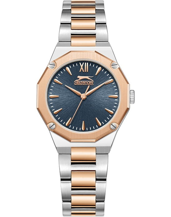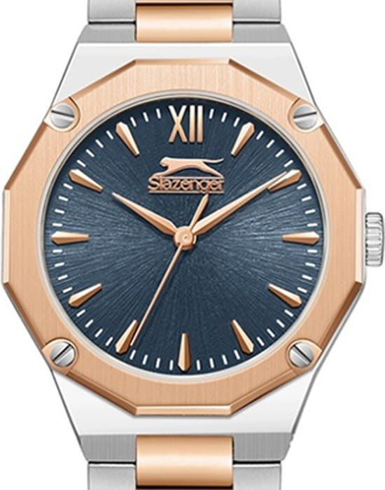 Slazenger SL.09.2374.3.03 — элегантные женские наручные часы, сочетающие изысканный дизайн и функциональность. Корпус выполнен из суперметалла, обеспечивающего лёгкость и прочность. Минеральное стеклоМинеральное стеклоМинеральное стекло представляет собой искусственно выращенный минерал кварца. Такое стекло отличается особой устойчивостью к повреждениям и царапинам. Уступает по некоторым качествам сапфировому стеклу. защищает циферблат от царапин и гарантирует превосходную читаемость. БезельБезельВнешний ободок, закрепляющий стекло. В спортивных часах так называется поворотное кольцо с делениями на циферблате, выполняет роль таймера – замеряет отрезки времени на шкале. Неподвижный безель – элемент декора. Однонаправленно вращающийся безель на дайверских часах позволяет фиксировать моменты погружения и выныривания на поверхность. с PVD-покрытиемPVDУльтратонкое покрытие наносится в технике вакуумного напыления, сочетает в себе нитрид титана особой прочности со слоем золота или оксида хрома. Несёт в себе декоративную или защитную функцию.. Синий циферблат подчёркивает стильный и современный образ. Браслет из суперметалла серебристого цвета с PVD-покрытиемPVDУльтратонкое покрытие наносится в технике вакуумного напыления, сочетает в себе нитрид титана особой прочности со слоем золота или оксида хрома. Несёт в себе декоративную или защитную функцию. обеспечивает комфортное ношение и надёжную фиксацию на запястье. Водонепроницаемость 30 метров делает модель устойчивой к случайным брызгам, что идеально подходит для повседневного использования.