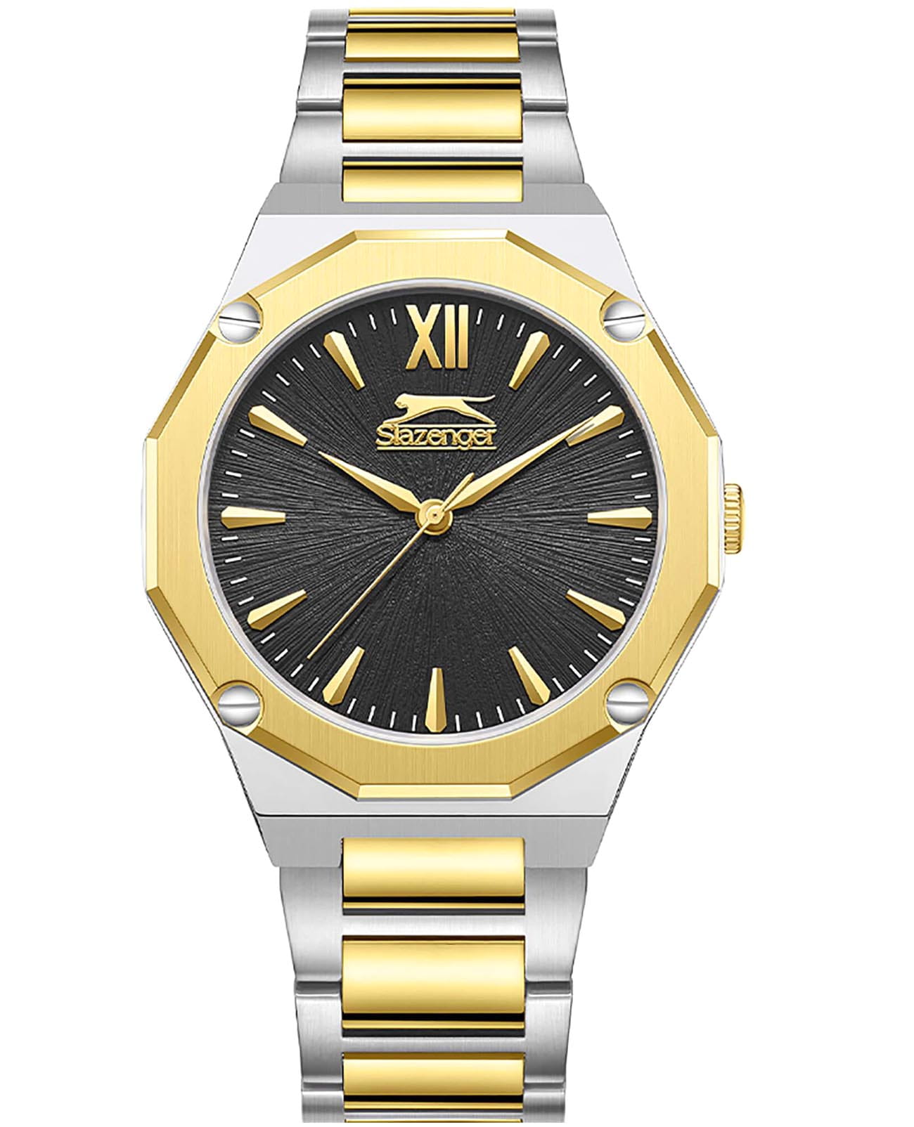 Мужские кварцевые часы Slazenger SL.09.2375.1.02 – идеальное сочетание классического дизайна и современных технологий, созданное для уверенных в себе мужчин. Корпус выполнен из суперметалла серебристого цвета, диаметром 41 мм и толщиной 8 мм, подчёркивает надежность модели и делает их идеальным аксессуаром для любой ситуации – будь то деловая встреча или повседневные выходы. Циферблат надёжно защищён минеральным стекломМинеральное стеклоМинеральное стекло представляет собой искусственно выращенный минерал кварца. Такое стекло отличается особой устойчивостью к повреждениям и царапинам. Уступает по некоторым качествам сапфировому стеклу., которое устойчиво к механическим повреждениям и сохраняет кристальную прозрачность. Неподвижный безельБезельВнешний ободок, закрепляющий стекло. В спортивных часах так называется поворотное кольцо с делениями на циферблате, выполняет роль таймера – замеряет отрезки времени на шкале. Неподвижный безель – элемент декора. Однонаправленно вращающийся безель на дайверских часах позволяет фиксировать моменты погружения и выныривания на поверхность. с IP-покрытиемIP-покрытиеМетод ионного напыления. Демонстрирует повышенную устойчивость к истиранию, окислению и химическим веществам. Под воздействием высокого давления и температуры около 1500°C молекулы металла надёжно соединяются с частицами корпуса часов. золотистого цвета. Стальной браслет с частичным IP-покрытиемIP-покрытиеМетод ионного напыления. Демонстрирует повышенную устойчивость к истиранию, окислению и химическим веществам. Под воздействием высокого давления и температуры около 1500°C молекулы металла надёжно соединяются с частицами корпуса часов. удобно облегает запястье и фиксируется с помощью раскладной застёжкиРаскладная застёжкаТакой тип застёжки используется только на браслетах из металла. Она никогда не раскрывается полностью, происходит разделение на 2 и более частей. Раскладывающая застёжка снизит вероятность потери часов к минимуму., обеспечивая надёжность и комфорт в повседневном ношении. Эти часы станут не просто аксессуаром, а надежным спутником в любой ситуации, подчеркивая ваш безупречный вкус и деловой стиль. Водозащита 50 метров позволит защитить корпус от случайных брызг или капель дождя.