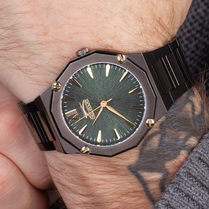 Мужские кварцевые часы Slazenger SL.09.2375.1.04 – идеальное сочетание классического дизайна и современных технологий, созданное для уверенных в себе мужчин. Корпус выполнен из суперметалла с IP-покрытиемIP-покрытиеМетод ионного напыления. Демонстрирует повышенную устойчивость к истиранию, окислению и химическим веществам. Под воздействием высокого давления и температуры около 1500°C молекулы металла надёжно соединяются с частицами корпуса часов. черного цвета, диаметром 41 мм и толщиной 8 мм, подчёркивает надежность модели и делает их идеальным аксессуаром для любой ситуации – будь то деловая встреча или повседневные выходы. Циферблат надёжно защищён минеральным стекломМинеральное стеклоМинеральное стекло представляет собой искусственно выращенный минерал кварца. Такое стекло отличается особой устойчивостью к повреждениям и царапинам. Уступает по некоторым качествам сапфировому стеклу., которое устойчиво к механическим повреждениям и сохраняет кристальную прозрачность. Стальной браслет с IP-покрытиемIP-покрытиеМетод ионного напыления. Демонстрирует повышенную устойчивость к истиранию, окислению и химическим веществам. Под воздействием высокого давления и температуры около 1500°C молекулы металла надёжно соединяются с частицами корпуса часов. удобно облегает запястье и фиксируется с помощью раскладной застёжкиРаскладная застёжкаТакой тип застёжки используется только на браслетах из металла. Она никогда не раскрывается полностью, происходит разделение на 2 и более частей. Раскладывающая застёжка снизит вероятность потери часов к минимуму., обеспечивая надёжность и комфорт в повседневном ношении. Эти часы станут не просто аксессуаром, а надежным спутником в любой ситуации, подчеркивая ваш безупречный вкус и деловой стиль. Водозащита 50 метров позволит защитить корпус от случайных брызг или капель дождя.