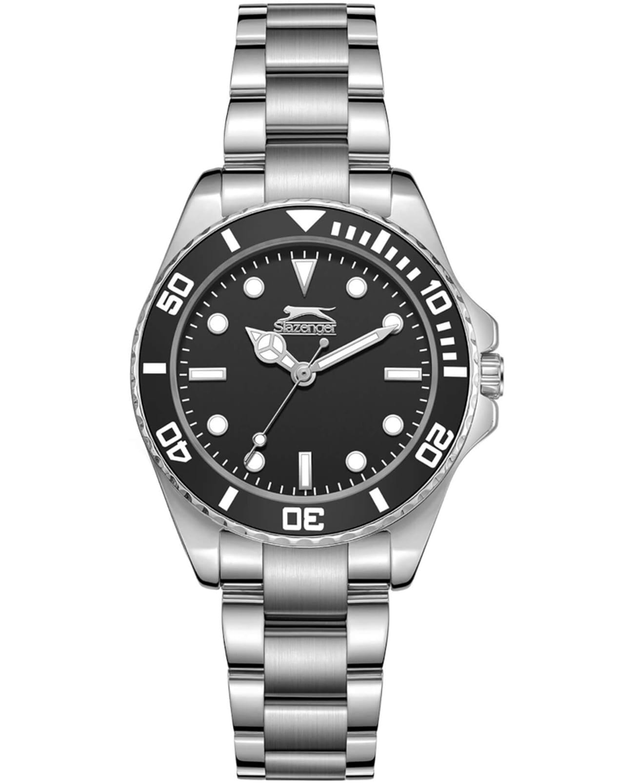 Женские кварцевые часы Slazenger — это элегантный аксессуар. Корпус диаметром 33 мм и толщиной 9 мм выполнен из суперметалла. Циферблат чёрного цвета оформлен индексами и стрелками. Поворотный безельБезельВнешний ободок, закрепляющий стекло. В спортивных часах так называется поворотное кольцо с делениями на циферблате, выполняет роль таймера – замеряет отрезки времени на шкале. Неподвижный безель – элемент декора. Однонаправленно вращающийся безель на дайверских часах позволяет фиксировать моменты погружения и выныривания на поверхность. из суперметалла с IP-покрытиемIP-покрытиеМетод ионного напыления. Демонстрирует повышенную устойчивость к истиранию, окислению и химическим веществам. Под воздействием высокого давления и температуры около 1500°C молекулы металла надёжно соединяются с частицами корпуса часов.. Циферблат защищён минеральным стекломМинеральное стеклоМинеральное стекло представляет собой искусственно выращенный минерал кварца. Такое стекло отличается особой устойчивостью к повреждениям и царапинам. Уступает по некоторым качествам сапфировому стеклу.. Механизм — кварцевый. Стрелки и метки с люминесцентным покрытиемЛюминесцентное покрытиеПозволяет считывать показания времени в темноте. Производители наносят на стрелки, часовые индексы, безель или поверхность циферблата светонакопительный состав, дающий холодное свечение., обеспечивающим хорошую читаемость в темноте. Часы оснащены браслетом из суперметалла с раскладной застёжкойРаскладная застёжкаТакой тип застёжки используется только на браслетах из металла. Она никогда не раскрывается полностью, происходит разделение на 2 и более частей. Раскладывающая застёжка снизит вероятность потери часов к минимуму.. Водонепроницаемость 50 м позволяет использовать часы в повседневных условиях. Гарантия — 12 месяцев. Идеальный выбор для тех, кто ценит стиль и качество.