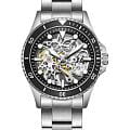 Мужские механические часы с автоподзаводом Slazenger — это выразительный и функциональный аксессуар. Корпус диаметром 42 мм и толщиной 15 мм выполнен из нержавеющей стали 316L. БезельБезельВнешний ободок, закрепляющий стекло. В спортивных часах так называется поворотное кольцо с делениями на циферблате, выполняет роль таймера – замеряет отрезки времени на шкале. Неподвижный безель – элемент декора. Однонаправленно вращающийся безель на дайверских часах позволяет фиксировать моменты погружения и выныривания на поверхность. — однонаправленный вращающийся. Циферблат чёрного цвета частично скелетонизирован, что позволяет наблюдать за работой механизма. Циферблат защищён минеральным стекломМинеральное стеклоМинеральное стекло представляет собой искусственно выращенный минерал кварца. Такое стекло отличается особой устойчивостью к повреждениям и царапинам. Уступает по некоторым качествам сапфировому стеклу.. Механизм — автоматический калибр. Прозрачная задняя крышка открывает вид на декорированный механизм. Стрелки и метки с люминесцентным покрытиемЛюминесцентное покрытиеПозволяет считывать показания времени в темноте. Производители наносят на стрелки, часовые индексы, безель или поверхность циферблата светонакопительный состав, дающий холодное свечение., обеспечивающим хорошую читаемость в темноте. Часы оснащены стальным браслетом с раскладной застёжкойРаскладная застёжкаТакой тип застёжки используется только на браслетах из металла. Она никогда не раскрывается полностью, происходит разделение на 2 и более частей. Раскладывающая застёжка снизит вероятность потери часов к минимуму.. Водонепроницаемость 100 м позволяет использовать часы для плавания и повседневного ношения. Гарантия — 12 месяцев. Идеальный выбор для тех, кто ценит стиль, технологичность и качество.