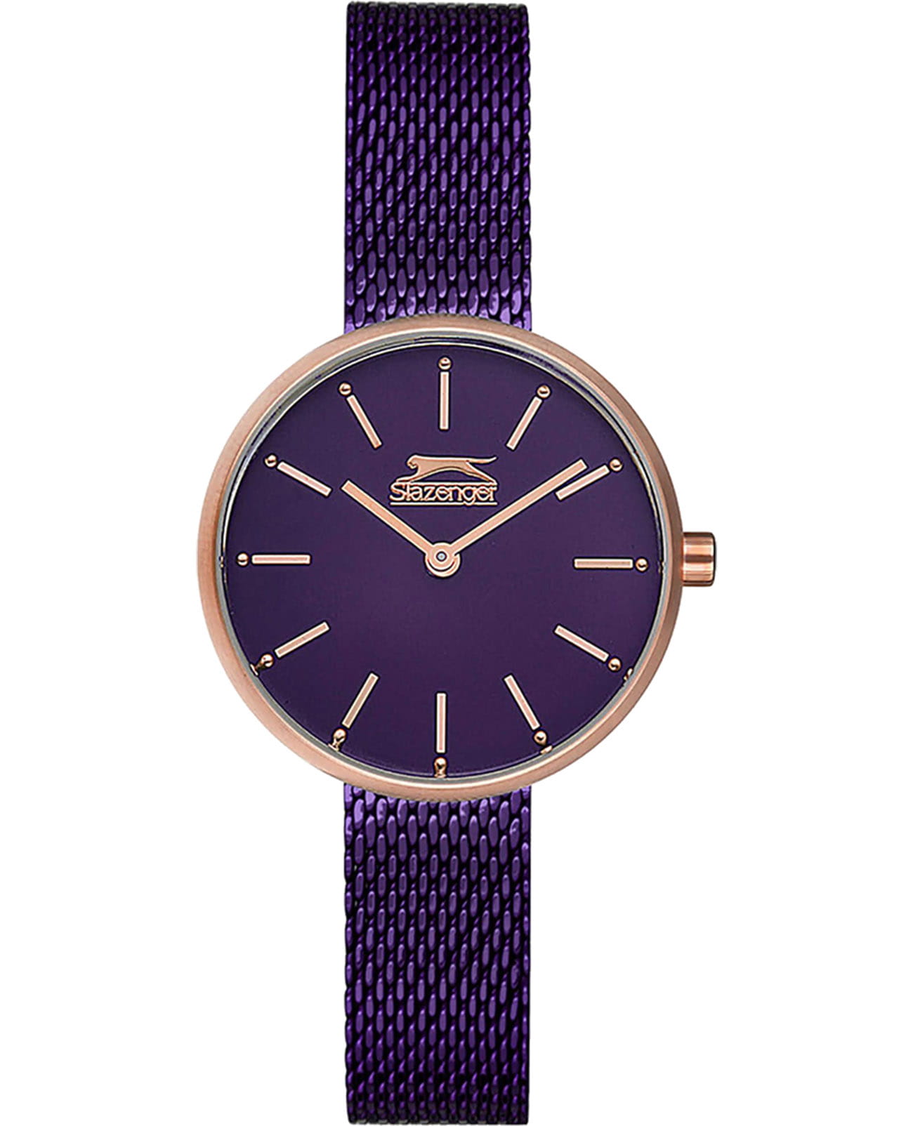 Женские кварцевые часы Slazenger — это стильный аксессуар с круглым корпусом и изящным браслетом миланского плетения. Корпус диаметром 30 мм и толщиной 8 мм выполнен из суперметалла с IP-покрытиемIP-покрытиеМетод ионного напыления. Демонстрирует повышенную устойчивость к истиранию, окислению и химическим веществам. Под воздействием высокого давления и температуры около 1500°C молекулы металла надёжно соединяются с частицами корпуса часов.. Циферблат фиолетового цвета оформлен индексами и стрелками. Циферблат защищён минеральным стекломМинеральное стеклоМинеральное стекло представляет собой искусственно выращенный минерал кварца. Такое стекло отличается особой устойчивостью к повреждениям и царапинам. Уступает по некоторым качествам сапфировому стеклу.. Механизм — кварцевый. Часы оснащены браслетом из суперметалла миланского плетения с раскладной застёжкойРаскладная застёжкаТакой тип застёжки используется только на браслетах из металла. Она никогда не раскрывается полностью, происходит разделение на 2 и более частей. Раскладывающая застёжка снизит вероятность потери часов к минимуму.. Водонепроницаемость 30 м позволяет использовать часы в повседневных условиях. Идеальный выбор для тех, кто ценит элегантность и качество.