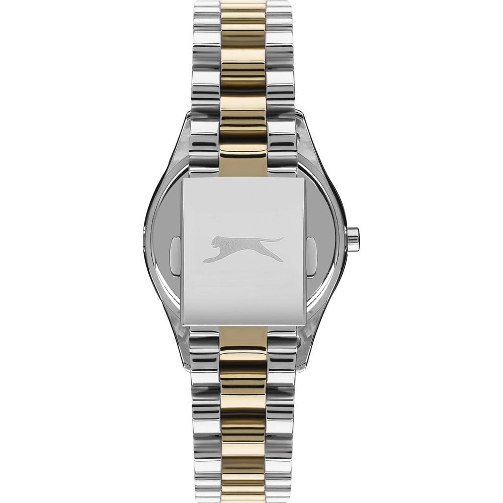 Женские кварцевые часы Slazenger — это элегантный аксессуар. Корпус диаметром 34 мм и толщиной 9 мм выполнен из суперметалла. БезельБезельВнешний ободок, закрепляющий стекло. В спортивных часах так называется поворотное кольцо с делениями на циферблате, выполняет роль таймера – замеряет отрезки времени на шкале. Неподвижный безель – элемент декора. Однонаправленно вращающийся безель на дайверских часах позволяет фиксировать моменты погружения и выныривания на поверхность. с IP-покрытиемIP-покрытиеМетод ионного напыления. Демонстрирует повышенную устойчивость к истиранию, окислению и химическим веществам. Под воздействием высокого давления и температуры около 1500°C молекулы металла надёжно соединяются с частицами корпуса часов.. Циферблат серебристого цвета оформлен индексами и стрелками. Циферблат защищён минеральным стекломМинеральное стеклоМинеральное стекло представляет собой искусственно выращенный минерал кварца. Такое стекло отличается особой устойчивостью к повреждениям и царапинам. Уступает по некоторым качествам сапфировому стеклу.. Механизм — кварцевый калибр Miyota 2035. Часы оснащены браслетом из суперметалла с частичным IP-покрытиемIP-покрытиеМетод ионного напыления. Демонстрирует повышенную устойчивость к истиранию, окислению и химическим веществам. Под воздействием высокого давления и температуры около 1500°C молекулы металла надёжно соединяются с частицами корпуса часов. на раскладной застёжкеРаскладная застёжкаТакой тип застёжки используется только на браслетах из металла. Она никогда не раскрывается полностью, происходит разделение на 2 и более частей. Раскладывающая застёжка снизит вероятность потери часов к минимуму.. Водонепроницаемость 30 м позволяет использовать часы в повседневных условиях. Идеальный выбор для тех, кто ценит стиль и качество.
