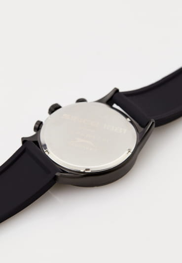 Мужские кварцевые часы Slazenger — это выразительный и функциональный аксессуар. Корпус диаметром 46 мм и толщиной 12 мм выполнен из суперметалла с IP-покрытиемIP-покрытиеМетод ионного напыления. Демонстрирует повышенную устойчивость к истиранию, окислению и химическим веществам. Под воздействием высокого давления и температуры около 1500°C молекулы металла надёжно соединяются с частицами корпуса часов.. Циферблат чёрного цвета оформлен индексами, стрелками и тремя вынесенными субциферблатами: для отображения дня недели, даты и 24-часового формата времени. Стрелки с люминесцентным покрытиемЛюминесцентное покрытиеПозволяет считывать показания времени в темноте. Производители наносят на стрелки, часовые индексы, безель или поверхность циферблата светонакопительный состав, дающий холодное свечение., обеспечивающим читаемость в темноте. Циферблат защищён минеральным стекломМинеральное стеклоМинеральное стекло представляет собой искусственно выращенный минерал кварца. Такое стекло отличается особой устойчивостью к повреждениям и царапинам. Уступает по некоторым качествам сапфировому стеклу.. Часы оснащены силиконовым ремешком на классической пряжке. Водонепроницаемость 30 м позволяет использовать часы в повседневных условиях. Идеальный выбор для тех, кто ценит стиль и качество.