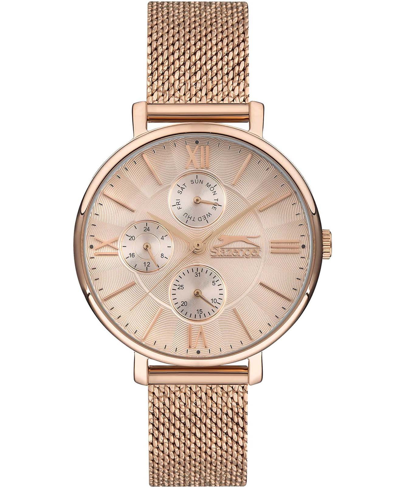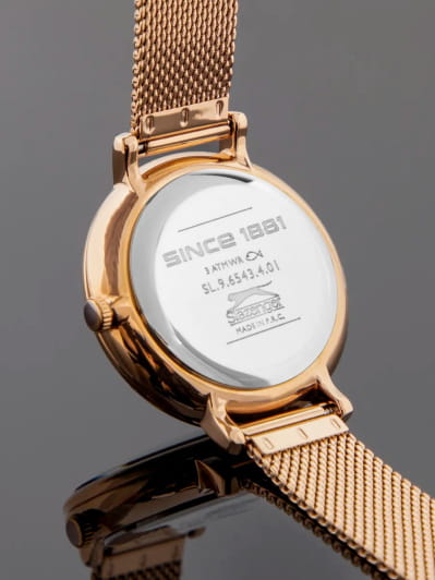Женские элегантные наручные часы Slazenger SL.09.6543.4.01 сочетают в себе современный стиль и функциональность. Корпус выполнен из суперметалла с IP-покрытиемIP-покрытиеМетод ионного напыления. Демонстрирует повышенную устойчивость к истиранию, окислению и химическим веществам. Под воздействием высокого давления и температуры около 1500°C молекулы металла надёжно соединяются с частицами корпуса часов., придающий модели дополнительную прочность и элегантный внешний вид. Изысканный циферблат защищён минеральным стекломМинеральное стеклоМинеральное стекло представляет собой искусственно выращенный минерал кварца. Такое стекло отличается особой устойчивостью к повреждениям и царапинам. Уступает по некоторым качествам сапфировому стеклу., устойчивым к царапинам и повреждениям. Часы оснащены дополнительными циферблатами, отображающими дату, день недели и 24-часовой формат времени, что добавляет практичности в повседневном использовании. Водонепроницаемость 3 АТМ позволяет использовать часы в повседневных условиях — при мытье рук или под лёгким дождём. Браслет из суперметалла с IP-покрытиемIP-покрытиеМетод ионного напыления. Демонстрирует повышенную устойчивость к истиранию, окислению и химическим веществам. Под воздействием высокого давления и температуры около 1500°C молекулы металла надёжно соединяются с частицами корпуса часов. и с раскладным замкомРаскладной замокДанный вариант застежки используется только на часах с металлическим браслетом. Отличительная особенность такого крепления в том, что длина браслета становится универсальной и вы можете самостоятельно отрегулировать нужный вам размер – застежка просто двигается по браслету часов.  обеспечивает надёжную фиксацию и комфорт при ношении. Эта модель идеально подходит для женщин, ценящих стиль, функциональность и надёжность в одном аксессуаре.