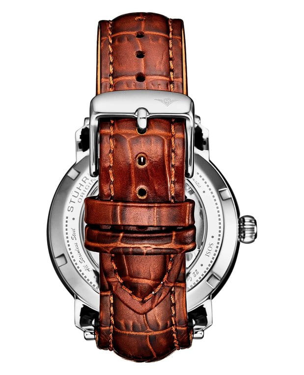 Мужские наручные часы Stührling Original 1017.02 из серии представляют собой элегантное сочетание классического стиля и современных технологий . Корпус часов диаметром 44 мм изготовлен из полированной и матовой нержавеющей стали, что обеспечивает высокую устойчивость к внешним воздействиям . Защиту циферблата обеспечивает прочное стекло KrysternaKrysternaKrysterna — инновационное стекло для наручных часов. Благодаря уникальной структуре, Krysterna объединяет ключевые преимущества двух материалов: твердость сапфира, защищающую от царапин, и гибкость минерального стекла, обеспечивающую устойчивость к деформациям. Такая комбинация делает его идеальным решением для часов, подверженных экстремальным нагрузкам, сохраняя при этом оптическую прозрачность., известное своей устойчивостью к царапинам и механическим повреждениям. Циферблат выполнен в стиле , что позволяет наблюдать за работой внутреннего механизма и подчеркивает сложность инженерного решения. Такой дизайн делает модель не только функциональной, но и стильной, привлекая внимание ценителей сложных технических решений . Часы обладают водонепроницаемостью до 50 метров (5 атмосфер), что позволяет использовать их в повседневных условиях, включая контакт с водой, например, при мытье рук или дожде . Заводная головка с системой завинчивания обеспечивает дополнительную защиту механизма от внешних воздействий.