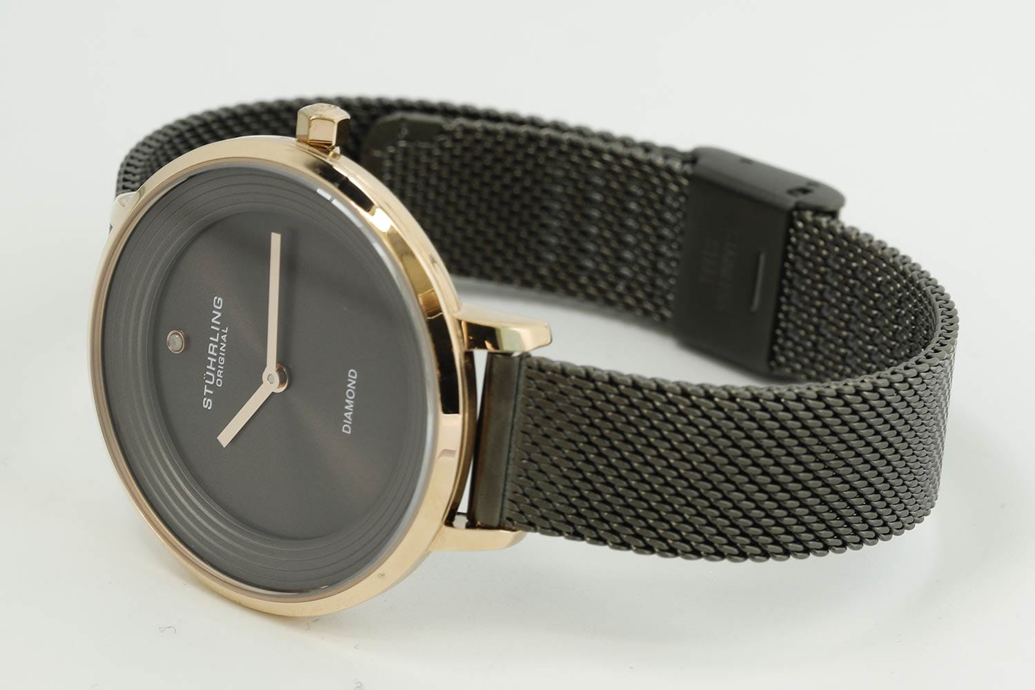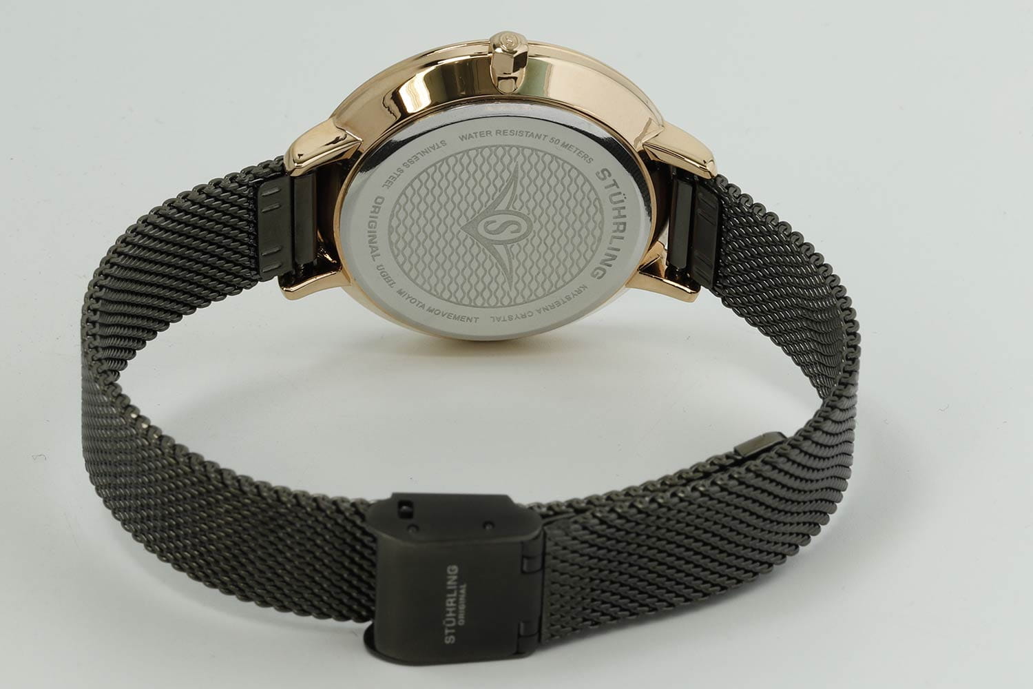 Stuhrling 3946.4 — элегантные женские часы, объединяющие строгую классику и современную функциональность. Корпус из нержавеющей стали с PVD-покрытиемPVDУльтратонкое покрытие наносится в технике вакуумного напыления, сочетает в себе нитрид титана особой прочности со слоем золота или оксида хрома. Несёт в себе декоративную или защитную функцию. создают ощущение монолитной надёжности, а глубокий циферблат украшенный кристаллом придаёт модели выразительность и характер. Стальной браслет миланского плетения с PVD-покрытиемPVDУльтратонкое покрытие наносится в технике вакуумного напыления, сочетает в себе нитрид титана особой прочности со слоем золота или оксида хрома. Несёт в себе декоративную или защитную функцию. на раскладном замкеРаскладной замокДанный вариант застежки используется только на часах с металлическим браслетом. Отличительная особенность такого крепления в том, что длина браслета становится универсальной и вы можете самостоятельно отрегулировать нужный вам размер – застежка просто двигается по браслету часов.. Прочное стекло KrysternaKrysternaKrysterna — инновационное стекло для наручных часов. Благодаря уникальной структуре, Krysterna объединяет ключевые преимущества двух материалов: твердость сапфира, защищающую от царапин, и гибкость минерального стекла, обеспечивающую устойчивость к деформациям. Такая комбинация делает его идеальным решением для часов, подверженных экстремальным нагрузкам, сохраняя при этом оптическую прозрачность. защищает циферблат от царапин, а надёжный кварцевый механизм гарантирует стабильную точность. Stuhrling — выбор уверенной девушки, ценящей сочетание функциональности, лаконичного дизайна и безупречной отделки.