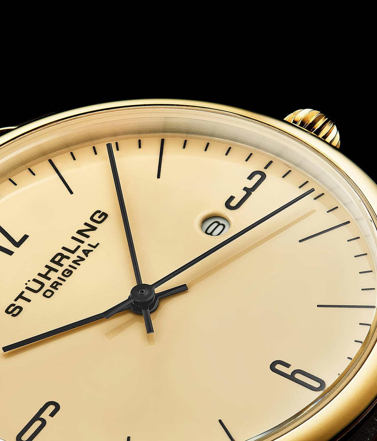 Stuhrling 3997A.8 — выразительные мужские часы с уникальным дизайнерским решением. Глубокий циферблат придаёт модели эффектный и современный вид. Корпус из нержавеющей стали с PVD-покрытиемPVDУльтратонкое покрытие наносится в технике вакуумного напыления, сочетает в себе нитрид титана особой прочности со слоем золота или оксида хрома. Несёт в себе декоративную или защитную функцию. отличается аккуратной полировкой и плавными формами, подчёркивающими элегантность классического стиля. Прочное стекло KrysternaKrysternaKrysterna — инновационное стекло для наручных часов. Благодаря уникальной структуре, Krysterna объединяет ключевые преимущества двух материалов: твердость сапфира, защищающую от царапин, и гибкость минерального стекла, обеспечивающую устойчивость к деформациям. Такая комбинация делает его идеальным решением для часов, подверженных экстремальным нагрузкам, сохраняя при этом оптическую прозрачность. защищает поверхность от царапин, сохраняя прозрачность и глубину цвета. Ремень из натуральной кожи на стандартной застежке, обеспечивает комфорт и надёжность при ежедневном ношении. Stuhrling — это гармония механической точности и выразительного дизайна, созданная для мужчин, ценящих стиль и совершенство деталей.