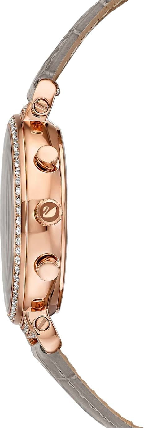Изысканные швейцарские часы-хронографХронографФункция позволяет измерять отрезки времени с особой точностью: часы, минуты, секунды. Верным признаком хронографа является наличие на циферблате 3 дополнительных окошек-счётчиков. с секундомеромСекундомерСекундоме́р — прибор, способный измерять интервалы времени с точностью до долей секунды. Swarovski 5580348 подчеркнут вашу женственность и элегантность. Эти часы обладают кварцевым механизмом, обеспечивающим точность хода. Корпус выполнен из стали с розово-золотистым PVDPVDУльтратонкое покрытие наносится в технике вакуумного напыления, сочетает в себе нитрид титана особой прочности со слоем золота или оксида хрома. Несёт в себе декоративную или защитную функцию. покрытием, что придает им утонченный вид, а серый перламутровый циферблат создает нежный акцент. Особое внимание привлекают кристаллы Swarovski, которые украшают как и безельБезельВнешний ободок, закрепляющий стекло. В спортивных часах так называется поворотное кольцо с делениями на циферблате, выполняет роль таймера – замеряет отрезки времени на шкале. Неподвижный безель – элемент декора. Однонаправленно вращающийся безель на дайверских часах позволяет фиксировать моменты погружения и выныривания на поверхность. с розово-золотистым PVDPVDУльтратонкое покрытие наносится в технике вакуумного напыления, сочетает в себе нитрид титана особой прочности со слоем золота или оксида хрома. Несёт в себе декоративную или защитную функцию. покрытием, так и циферблат, добавляя блеска и лоска. Кожаный ремешок с классической застежкой обеспечивает комфортное ношение и легкость замены, что позволяет легко адаптировать часы к вашему настроению и стилю. Эти часы с водозащитой 50WR подойдут для повседневного использования, а минеральное стеклоМинеральное стеклоМинеральное стекло представляет собой искусственно выращенный минерал кварца. Такое стекло отличается особой устойчивостью к повреждениям и царапинам. Уступает по некоторым качествам сапфировому стеклу. защитит их от царапин. Диаметр корпуса составляет 36 мм, а длина ремешка – 190 мм, что делает их удобными и подходящими для любой женской руки. Эти часы не просто аксессуар, а настоящее произведение искусства, способное стать ярким акцентом любого образа.