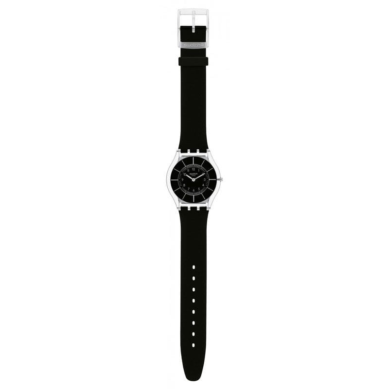 Часы SFK361 Black Classiness от бренда Swatch — это безупречно подобранный аксессуар, который может многое сказать о вкусе человека. Эти швейцарские часы легкие и лаконичные, с толщиной корпуса всего 3,9 мм и кварцевым механизмом, что делает их идеальными для вашего стильного образа! Уникальная технология крепления механизма и рекордно малое количество деталей обеспечивают точность хода на уровне +/- 0,1 секунды в сутки при нормальных температурных и влажностных условиях. Стекло, изготовленное по технологии PMMA, легко поддается полировке. Ширина ремешка составляет 16,5 мм, а длина — от 150 до 200 мм. Силиконовый ремень на классической застежке.