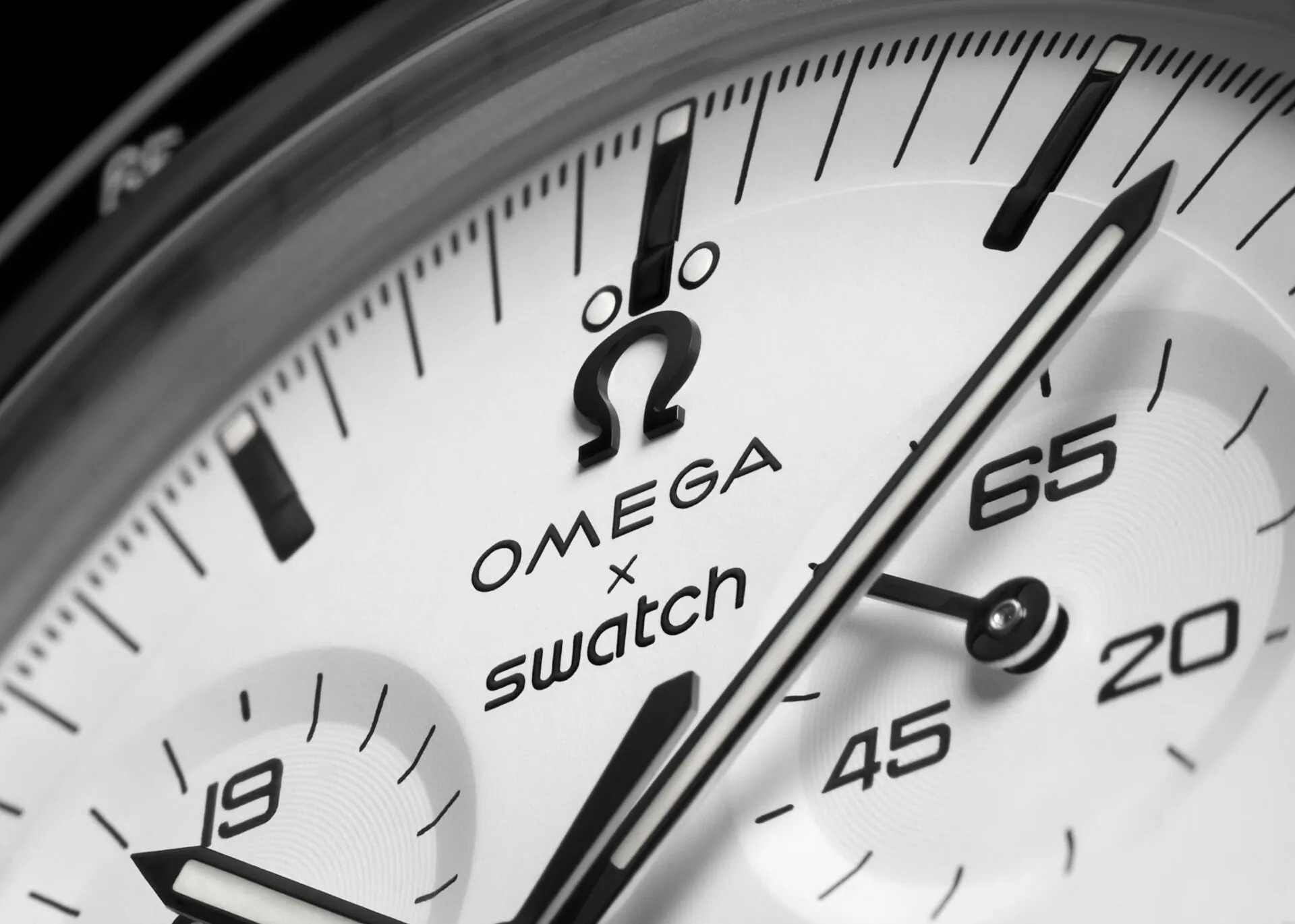 Часы Swatch Bioceramic Moonswatch 1965 SO33M106 — это стильный и современный аксессуар для тех, кто ценит лёгкость и комфорт. Часы идеально подойдут как для мужчин, так и для женщин. Корпус диаметром 42 мм и пряжка этих уникальных часов изготовлены из биокерамикиБиокерамикаБиокерамика — это материал, который на две трети состоит из керамики, на одну треть — из биопластика. Он сочетает в себе лучшие качества обоих материалов и обладает прочностью и шелковистой на ощупь текстурой. серой расцветки, напоминающей нержавеющую сталь. Модель оснащена белым циферблатом и черным биокерамическим безелемБезельВнешний ободок, закрепляющий стекло. В спортивных часах так называется поворотное кольцо с делениями на циферблате, выполняет роль таймера – замеряет отрезки времени на шкале. Неподвижный безель – элемент декора. Однонаправленно вращающийся безель на дайверских часах позволяет фиксировать моменты погружения и выныривания на поверхность. с нанесенной на него шкалой тахиметраТахиметрРазмеченная шкала, располагается на ободке или безеле часов. Тахиметр позволяет рассчитать скорость на определённом участке пути, расстояние измеряется в километрах или милях., а также ремешком с липучкой VELCRO®. Часовые отметки, часовая и минутная стрелки, а также кончик секундной стрелки хронографаХронографФункция позволяет измерять отрезки времени с особой точностью: часы, минуты, секунды. Верным признаком хронографа является наличие на циферблате 3 дополнительных окошек-счётчиков. покрыты люминесцентным покрытиемЛюминесцентное покрытиеПозволяет считывать показания времени в темноте. Производители наносят на стрелки, часовые индексы, безель или поверхность циферблата светонакопительный состав, дающий холодное свечение. Super-LumiNova® класса А, благодаря чему они прекрасно светятся в темноте (зеленым свечением). Циферблаты каждых часов в данной коллекции украшены фирменным знаком OMEGA X Swatch, культовым логотипом Speedmaster и логотипом MoonSwatch.