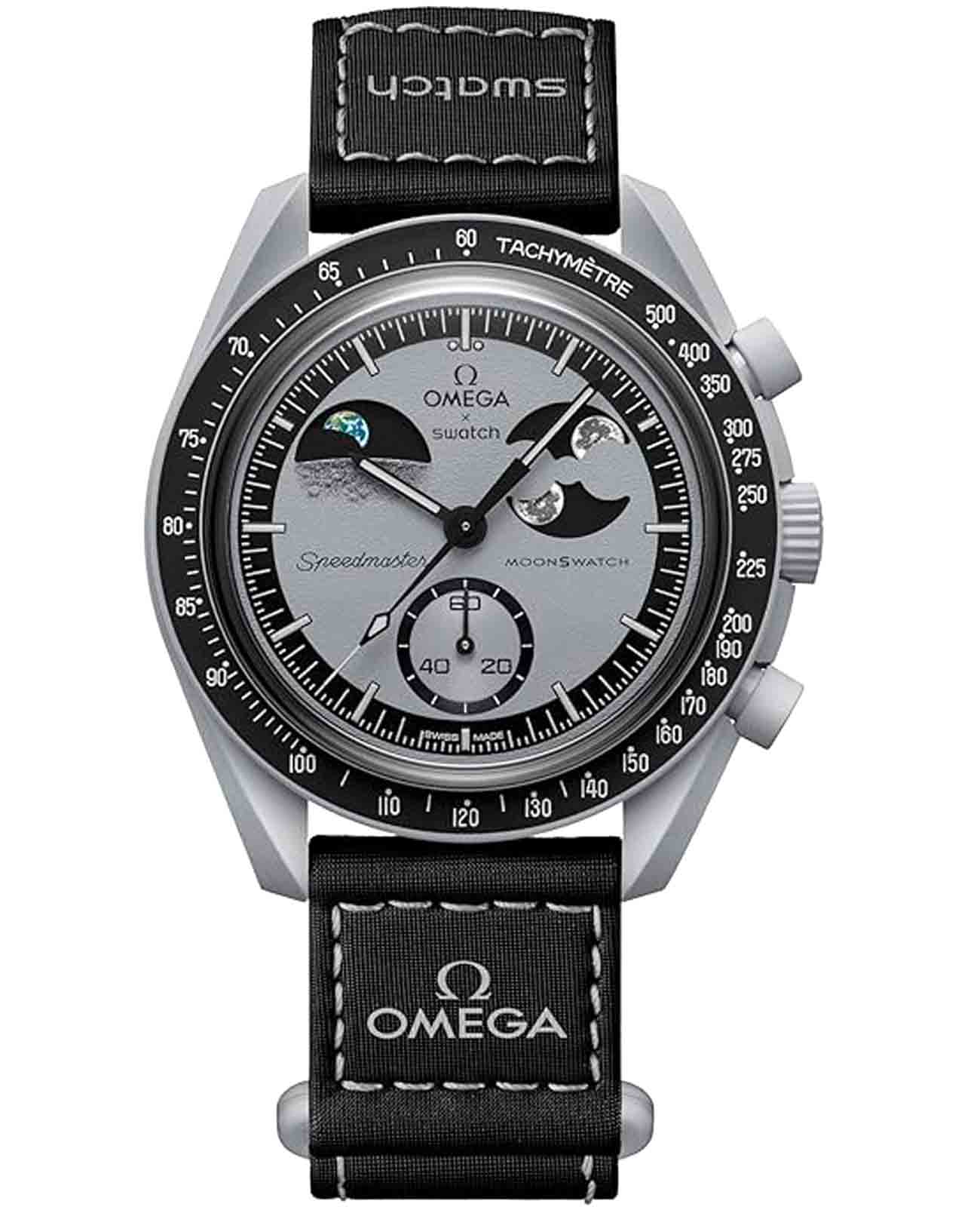 Швейцарские мужские часы Swatch x Omega Bioceramic Moonswatch Mission to EarthPhase SO33M700 с хронографом