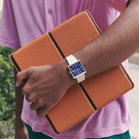 Swatch Square Bioceramic Standard SO34T700 "WHAT IF...BEIGE?" - это стильные квадратные часы с корпусом 41,8*41,8 мм из матовой биокерамики бежевого цвета. Модель оснащена кварцевым механизмом, окошком даты и дня недели, водонепроницаемостью до 20 метров. Часы имеют бежевый матовый ремешок из биоматериала и стекло из биоматериала, стрелки с люминесцентным покрытиемЛюминесцентное покрытиеПозволяет считывать показания времени в темноте. Производители наносят на стрелки, часовые индексы, безель или поверхность циферблата светонакопительный состав, дающий холодное свечение.. Эта экологичная модель унисекс сочетает инновационные материалы с необычным бежево-синим дизайном, вдохновленным оригинальным Swatch 1983 года, и подходит для тех, кто ценит минимализм и заботу об окружающей среде.