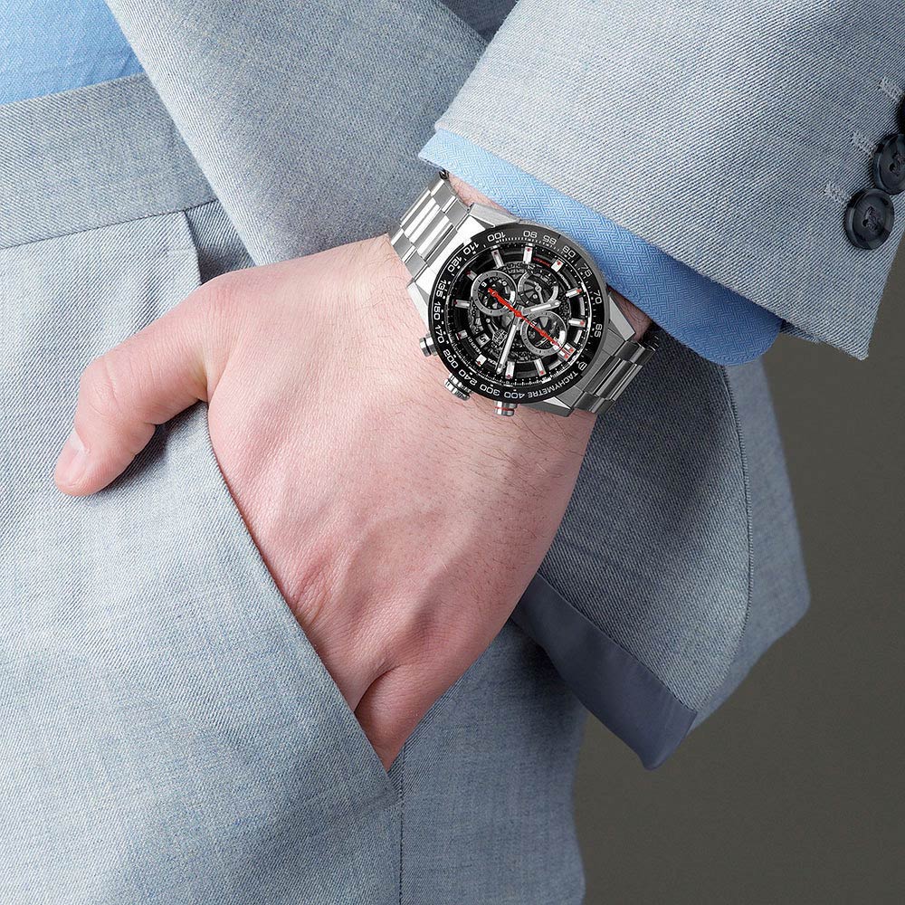 Механические мужские швейцарские часы TAG Heuer Carrera CAR201V.BA0766, механический механизм (автоматический калибр) с высокой точностью. Сапфировое стекло устойчивое к появлению царапин, обладающее высокой прозрачностью. Класс водозащиты: 100 метров, позволит плавать, нырять и заниматься другими водными видами спорта. Корпус часов изготовлен из стали, цвета.