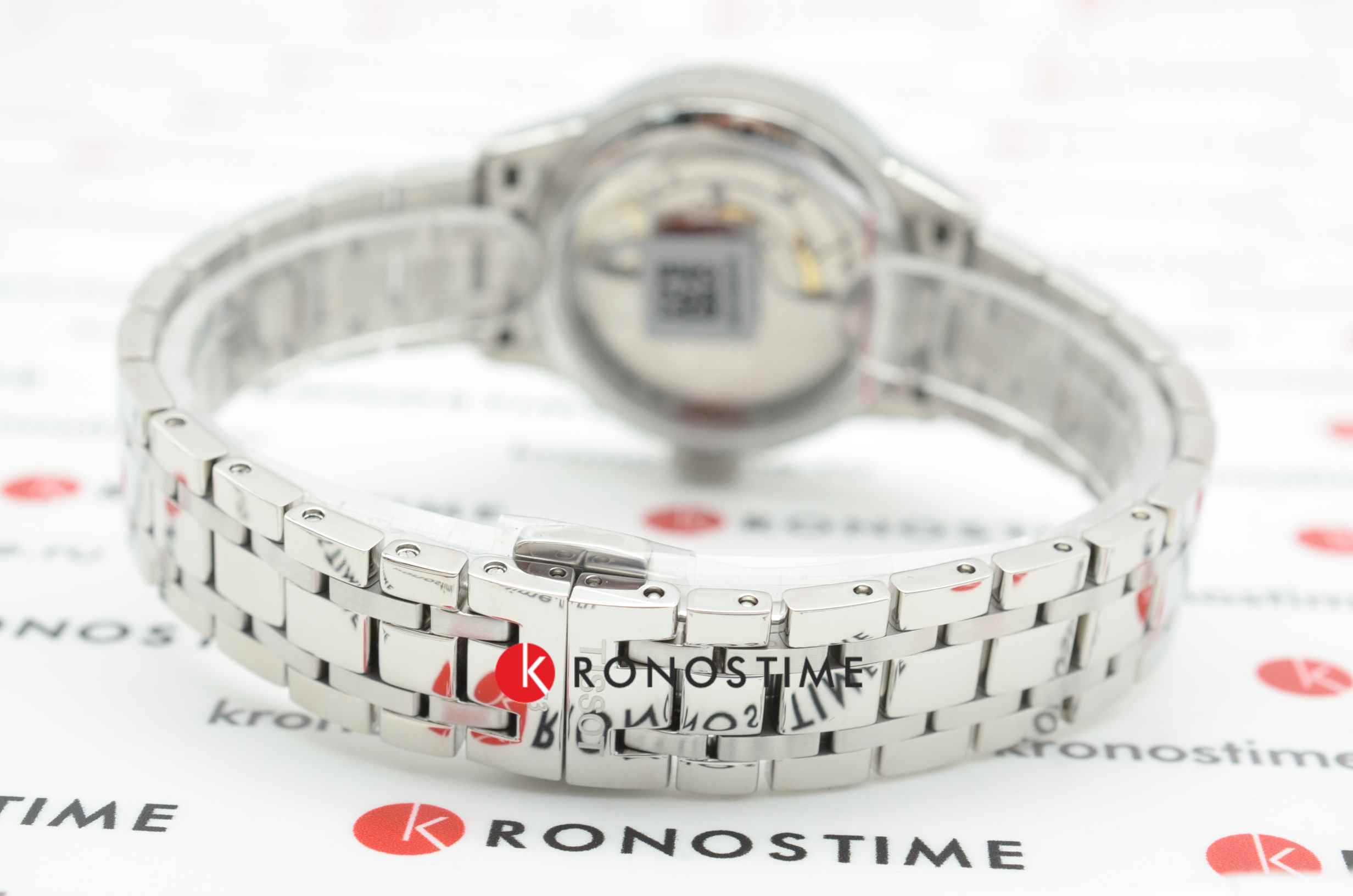 Светлый узорчатый циферблат дополнен перламутровой вставкой, оригинальное оформление позволит владелице часов всегда привлекать внимание окружающих. Автоматический калибр Powermatic 80Powermatic 80Эксклюзивный калибр от швейцарской компании ETA с увеличенным запасом хода до 80 часов за счёт удлинённой заводной пружины. Характеризуется улучшенной системой спуска со сниженным трением. с увеличенным запасом хода до 80 часов. Двухстороннее антибликовое покрытие сапфирового стекла. Прозрачная задняя крышка. Окошко даты. Габариты: 32 x 32 x 10,7 мм.