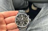 Наручные часы относятся к категории самых больших хронографов Tissot, диаметр их корпуса составляет 45 мм. Такая модель подчеркнёт любой образ и позволит выделяться среди окружающих. Циферблат в чёрном цвете отличается лаконичным исполнением, люминесцентное покрытие облегчает пользование часами в темноте. Сапфировое стекло отличается устойчивостью к появлению царапин. Кварцевый механизм ETA G10.212. Габариты: 45 x 45 x 11 мм.