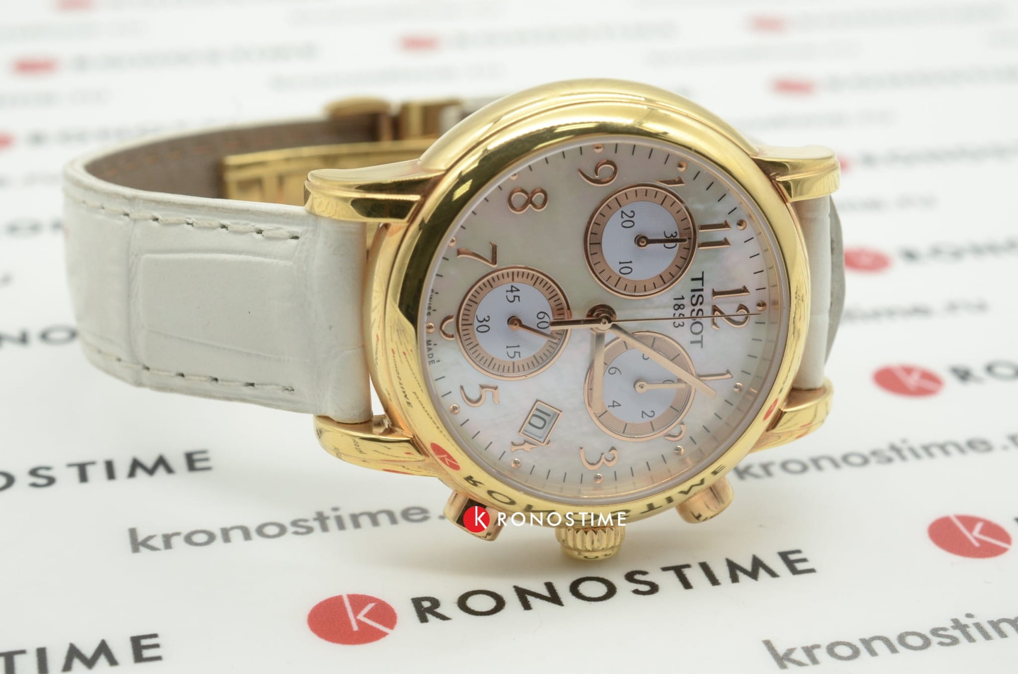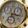 TISSOT Dressport Quartz Chronograph - женские кварцевые наручные часы. Корпус этих часов среднего размера (35 мм) и выполнен из нержавеющей стали L316 с PVD-покрытием цвета розового золота. Модель имеет устойчивое к царапинам сапфировое стекло, ремешок из натуральной кожи белого цвета, перламутровый циферблат. Калибр механизма: ETA G15.211. Класс водозащиты: 30 м / 3 АТМ (защита от брызг и случайных капель). Дополнительные функции и особенности: отображение числа, хронограф (секундомер).