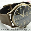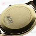 Наручные часы представляют собой современные технологии в сочетании с винтажным дизайном, во внешнем облике угадываются черты моделей 1960-х годов. Лаконичный чёрный циферблат имеет золотистые стрелки, цифры и метки, что весьма гармонично смотрится. Корпус имеет состаренное золотистое PVD-покрытиеPVDУльтратонкое покрытие наносится в технике вакуумного напыления, сочетает в себе нитрид титана особой прочности со слоем золота или оксида хрома. Несёт в себе декоративную или защитную функцию.. Кварцевый механизм ETA F06.111. Ремешок из тиснёной натуральной кожи. Сапфировое стекло. Функция EOLEOLПредставляет собой систему, уведомляющую владельца часов о необходимости замены элемента питания. За 2 недели до полного разряда батарейки секундная стрелка перестаёт ходить чётко и начинает перепрыгивать на 3-4 деления., отображение текущего числа. Габариты: 40 x 40 x 10,7 мм.