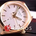 Ремешок из натуральной кожи в кремовом цвете идеально сочетается со светлым циферблатом и корпусом с PVD-покрытиемPVDУльтратонкое покрытие наносится в технике вакуумного напыления, сочетает в себе нитрид титана особой прочности со слоем золота или оксида хрома. Несёт в себе декоративную или защитную функцию. оттенка "розовое золото". Внутри заключён высокоточный кварцевый механизм ETA F04.111 с 3 камнями. Сапфировое стекло препятствует появлению царапин и отметин. Водонепроницаемость при давлении 10 бар. Люминесцентная подсветкаЛюминесцентное покрытиеПозволяет считывать показания времени в темноте. Производители наносят на стрелки, часовые индексы, безель или поверхность циферблата светонакопительный состав, дающий холодное свечение.. Апертура даты. Функция EOLEOLПредставляет собой систему, уведомляющую владельца часов о необходимости замены элемента питания. За 2 недели до полного разряда батарейки секундная стрелка перестаёт ходить чётко и начинает перепрыгивать на 3-4 деления.. Габариты: 33 x 33 x 9 мм.