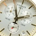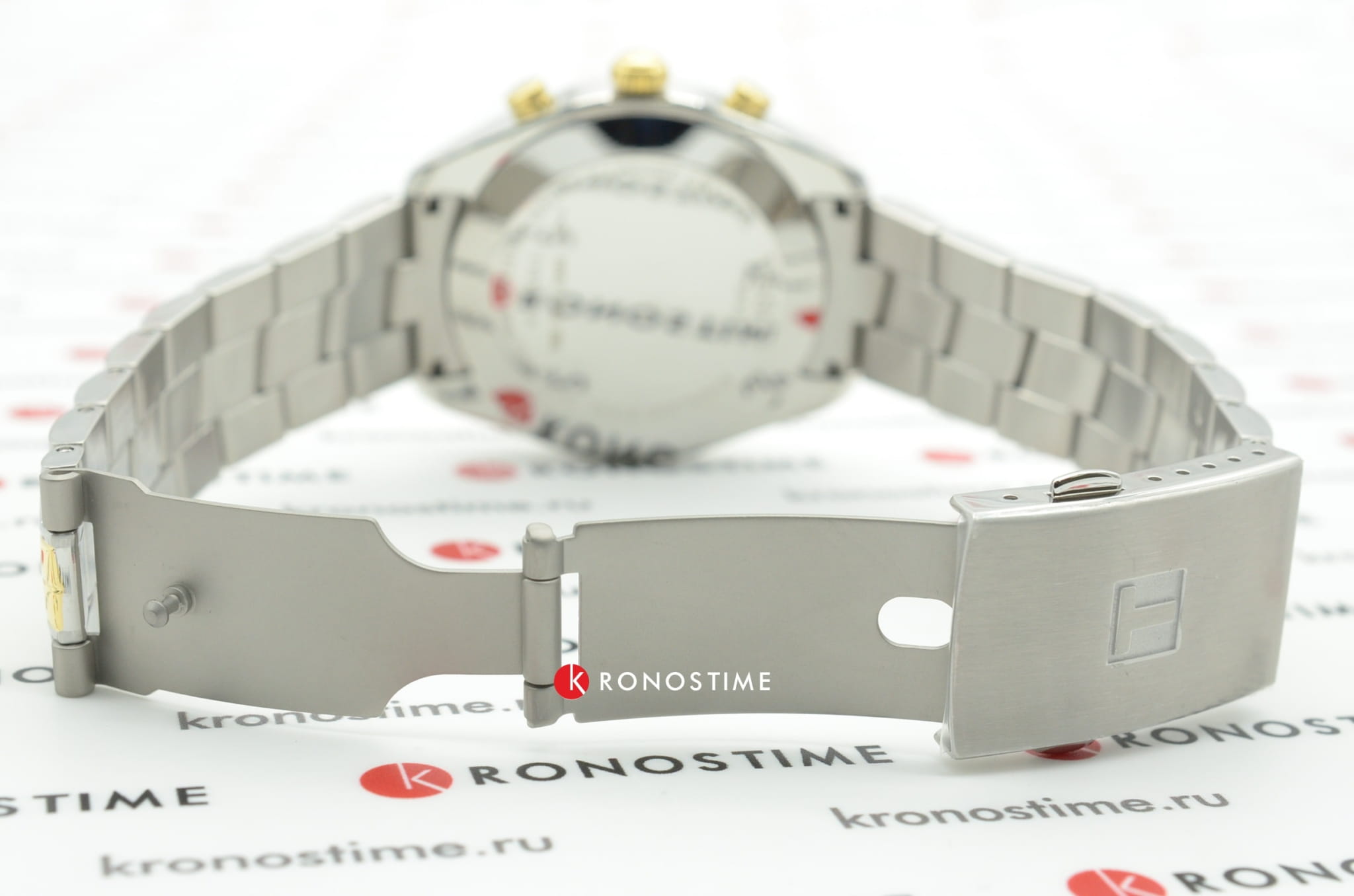 Спортивный кварцевый хронографХронографФункция позволяет измерять отрезки времени с особой точностью: часы, минуты, секунды. Верным признаком хронографа является наличие на циферблате 3 дополнительных окошек-счётчиков. измеряет время с особой точностью, позволяет забыть о необходимости регулярного завода. Стильный циферблат белого цвета имеет контрастные часовые метки, спортивной стилистики добавляют мини-счётчики. Швейцарский кварцевый механизм ETA G10.211 с 4 камнями. Надёжный корпус из нержавеющей стали 316L с золотистым PVD-покрытиемPVDУльтратонкое покрытие наносится в технике вакуумного напыления, сочетает в себе нитрид титана особой прочности со слоем золота или оксида хрома. Несёт в себе декоративную или защитную функцию.. Люминесцентная подсветкаЛюминесцентное покрытиеПозволяет считывать показания времени в темноте. Производители наносят на стрелки, часовые индексы, безель или поверхность циферблата светонакопительный состав, дающий холодное свечение.. Сапфировое стекло. Водостойкость 10 бар. Прямоугольное окошко даты. Габариты: 41 x 41 x 10,7 мм.