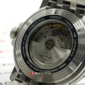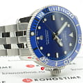Аксессуар характеризуется как дайверские часы, водонепроницаемость сохраняется при давлении до 30 бар на глубине 300 метров. Модель имеет сине-серебристое исполнение, такое сочетание гармонирует с любой одеждой. Внутри герметичного корпуса с завинчивающейся заводной головкой находится популярный швейцарский калибр Powermatic 80Powermatic 80Эксклюзивный калибр от швейцарской компании ETA с увеличенным запасом хода до 80 часов за счёт удлинённой заводной пружины. Характеризуется улучшенной системой спуска со сниженным трением. с запасом хода до 80 часов. Прозрачная задняя крышка. Керамический безельБезельВнешний ободок, закрепляющий стекло. В спортивных часах так называется поворотное кольцо с делениями на циферблате, выполняет роль таймера – замеряет отрезки времени на шкале. Неподвижный безель – элемент декора. Однонаправленно вращающийся безель на дайверских часах позволяет фиксировать моменты погружения и выныривания на поверхность.. Надежный стальной браслет с застёжкой с удлинением для дайверовУдлинение для дайверовЗастёжка с удлинением для дайверов представляет собой безопасное крепление, которое позволяет надевать часы поверх гидрокостюма. Гибкая застёжка удлиняется на 1-2 миллиметра.. Люминесцентная подсветкаЛюминесцентное покрытиеПозволяет считывать показания времени в темноте. Производители наносят на стрелки, часовые индексы, безель или поверхность циферблата светонакопительный состав, дающий холодное свечение.. Окошко даты. Габариты: 43 x 43 x 12,7 мм.