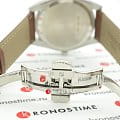 Синий циферблат в лаконичном исполнении не содержит лишних деталей, чтобы ничего не отвлекало от просмотра времени или сегодняшнего числа. Прочный ремешок из натуральной коровьей кожи надёжно обхватывает запястье. Кварцевый механизм ETA F06.115 с 3 камнями. Сапфировое стекло практически невозможно поцарапать. Водонепроницаемость при давлении 10 бар. Люминесцентная подсветкаЛюминесцентное покрытиеПозволяет считывать показания времени в темноте. Производители наносят на стрелки, часовые индексы, безель или поверхность циферблата светонакопительный состав, дающий холодное свечение.. Функция EOLEOLПредставляет собой систему, уведомляющую владельца часов о необходимости замены элемента питания. За 2 недели до полного разряда батарейки секундная стрелка перестаёт ходить чётко и начинает перепрыгивать на 3-4 деления.. Габариты: 40 x 40 x 8,52 мм.