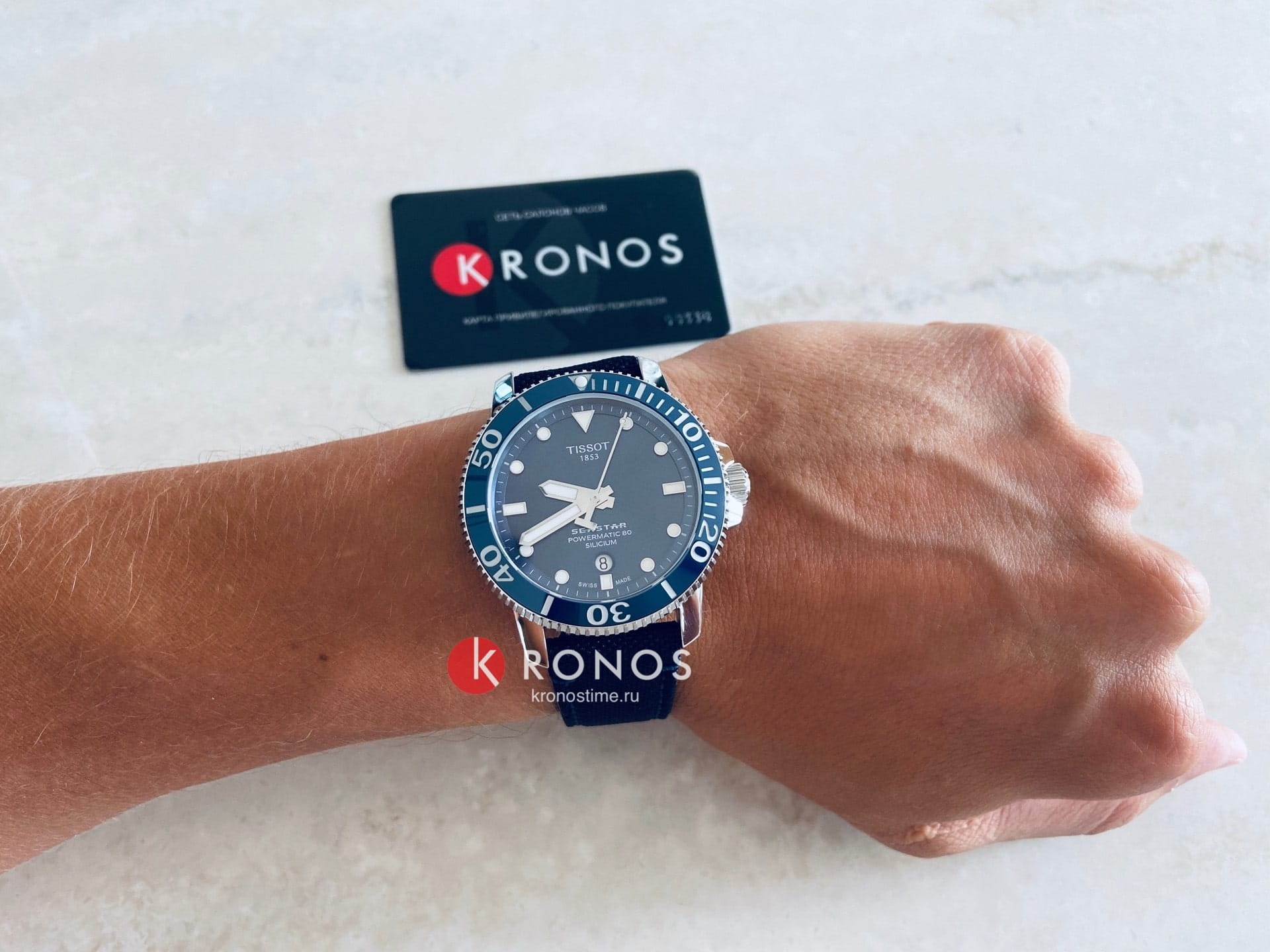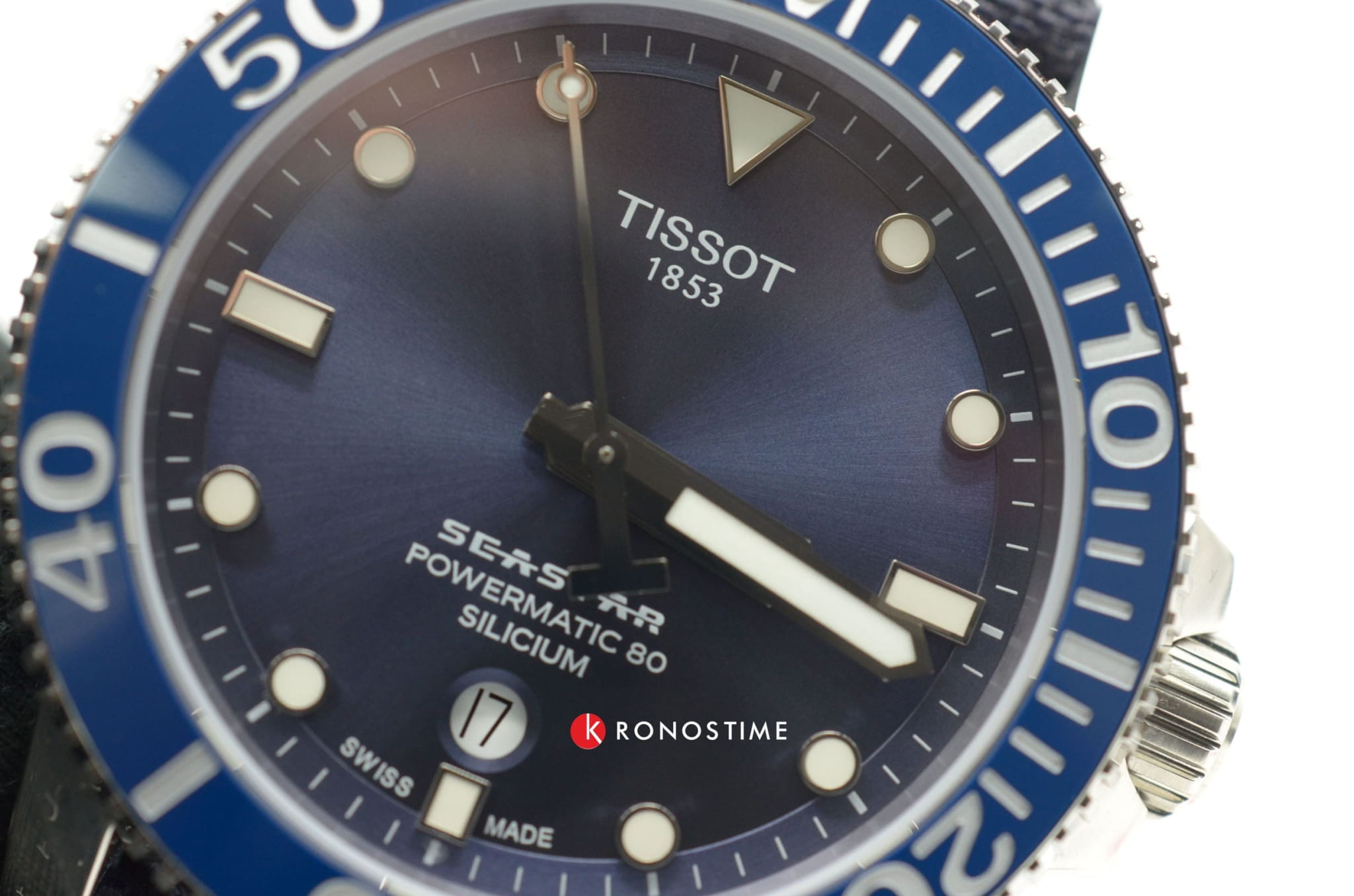 Наручные часы в синем исполнении идеально подойдут к любой одежде, массивный циферблат добавляет образу солидности и респектабельности. Внутри стального корпуса с керамическим безелемБезельВнешний ободок, закрепляющий стекло. В спортивных часах так называется поворотное кольцо с делениями на циферблате, выполняет роль таймера – замеряет отрезки времени на шкале. Неподвижный безель – элемент декора. Однонаправленно вращающийся безель на дайверских часах позволяет фиксировать моменты погружения и выныривания на поверхность. находится высокоточный автоматический калибр от ETA Powermatic 80 SiliciumPowermatic 80 SiliciumМеханизм обладает самой высокой точностью хода за всю историю Tissot. Дополняется уникальной кремниевой спиралью, минимизирующей воздействие магнитных полей и перепада температур. Сохраняется запас хода до 80 часов благодаря удлиненной заводной пружине и снижению трения в системе спуска. с запасом хода 80 часов. Сохраняется водостойкость при давлении 30 бар, этому способствуют заводная головка и скелетонизированная задняя крышка, которые завинчиваются. Люминесцентная подсветкаЛюминесцентное покрытиеПозволяет считывать показания времени в темноте. Производители наносят на стрелки, часовые индексы, безель или поверхность циферблата светонакопительный состав, дающий холодное свечение.. Удобный тканевый ремешок. . Габариты: 43 x 43 x 12,7 мм.