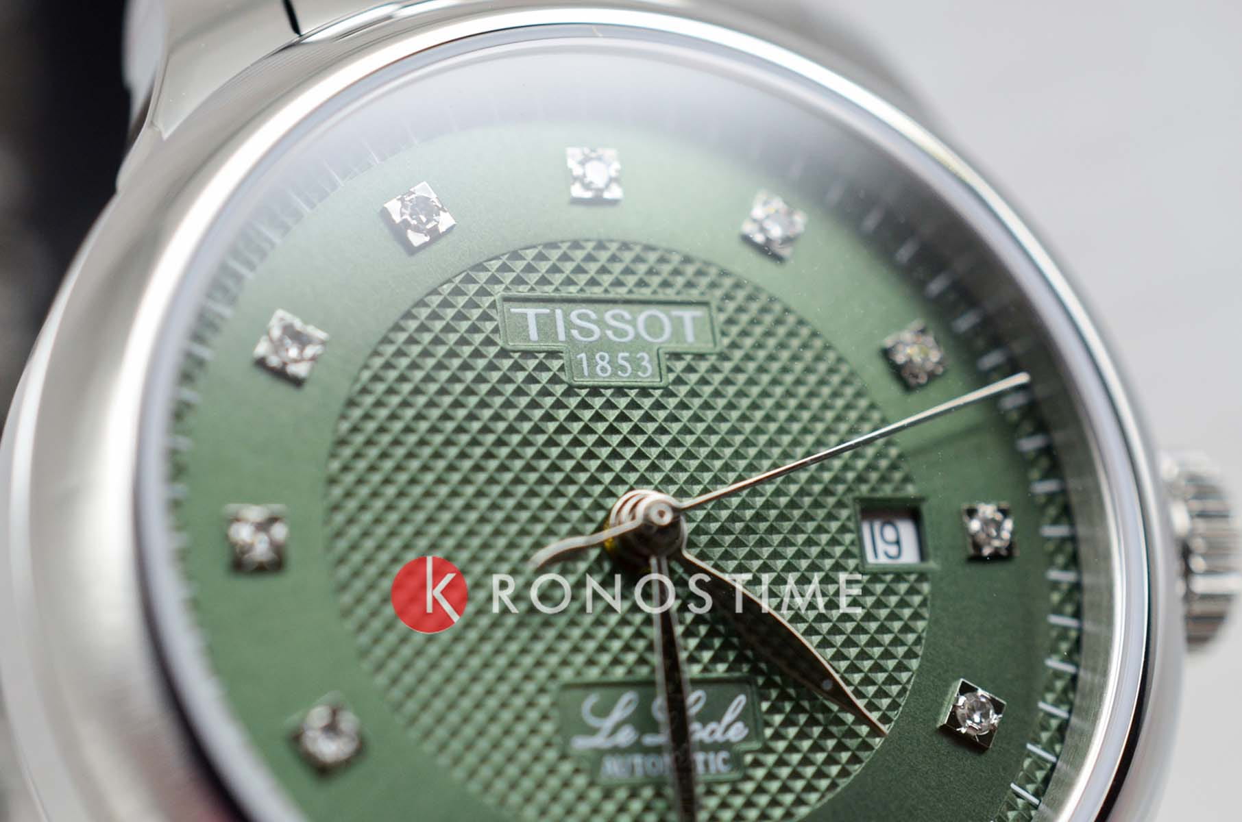 Женские наручные часы Tissot Le Locle Automatic Lady (модель T006.207.11.096.00) – утончённое сочетание элегантности и технологичности. Корпус диаметром 29 мм выполнен из нержавеющей стали 316L и оснащён прозрачной задней крышкой, позволяющей наблюдать за работой швейцарского механизма. Зелёный циферблат с узором "clous de Paris" и восемью бриллиантами подчёркивает изысканность модели. Он надёжно защищён сапфировым стекломСапфировое стеклоПрочный и надёжный материал из кристалла сапфира синтетического происхождения, характеризующийся особой твёрдостью и устойчивостью к царапинам и повреждениям. с антибликовым покрытиемАнтибликовое покрытиеСлой оксида металла в 0,13-0,3 микрон, благодаря которому стекло часов не бликует и не отражает свет. Антибликовое покрытие уменьшает отражение света в 10 раз, обеспечивая отличную читаемость показателей циферблата., обеспечивающим идеальную читаемость. Механизм Powermatic 80Powermatic 80Эксклюзивный калибр от швейцарской компании ETA с увеличенным запасом хода до 80 часов за счёт удлинённой заводной пружины. Характеризуется улучшенной системой спуска со сниженным трением. с запасом хода 48 часов оснащён инновационной пружиной Nivachron™Nivachron™Специально разработанный инновационный сплав Nivachron™ повышает устойчивость часов к воздействию магнитных полей., повышающей устойчивость к магнитным полям и ударам. Браслет из нержавеющей стали дополнен удобной застёжкой 'бабочка'Застёжка "бабочка"Такой вид застёжки дополняется предохранителями, помогающими избежать случайного раскрытия браслета. Обладают изящным исполнением. , обеспечивающей комфортное ношение. Водонепроницаемость 3 бара (30 метров) защитит от случайных брызг. Идеальный аксессуар для женщин, ценящих сочетание классики и передовых технологий.