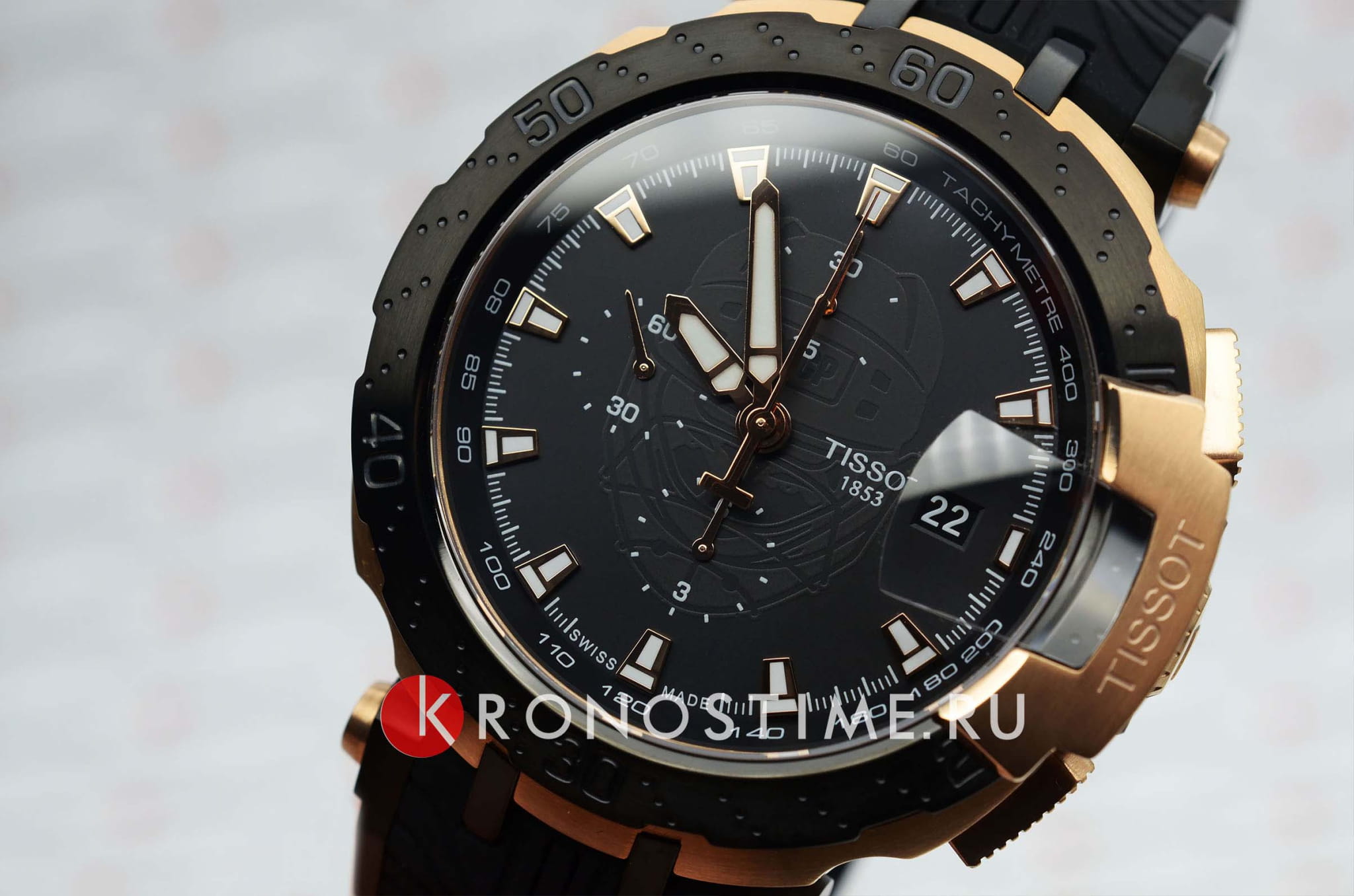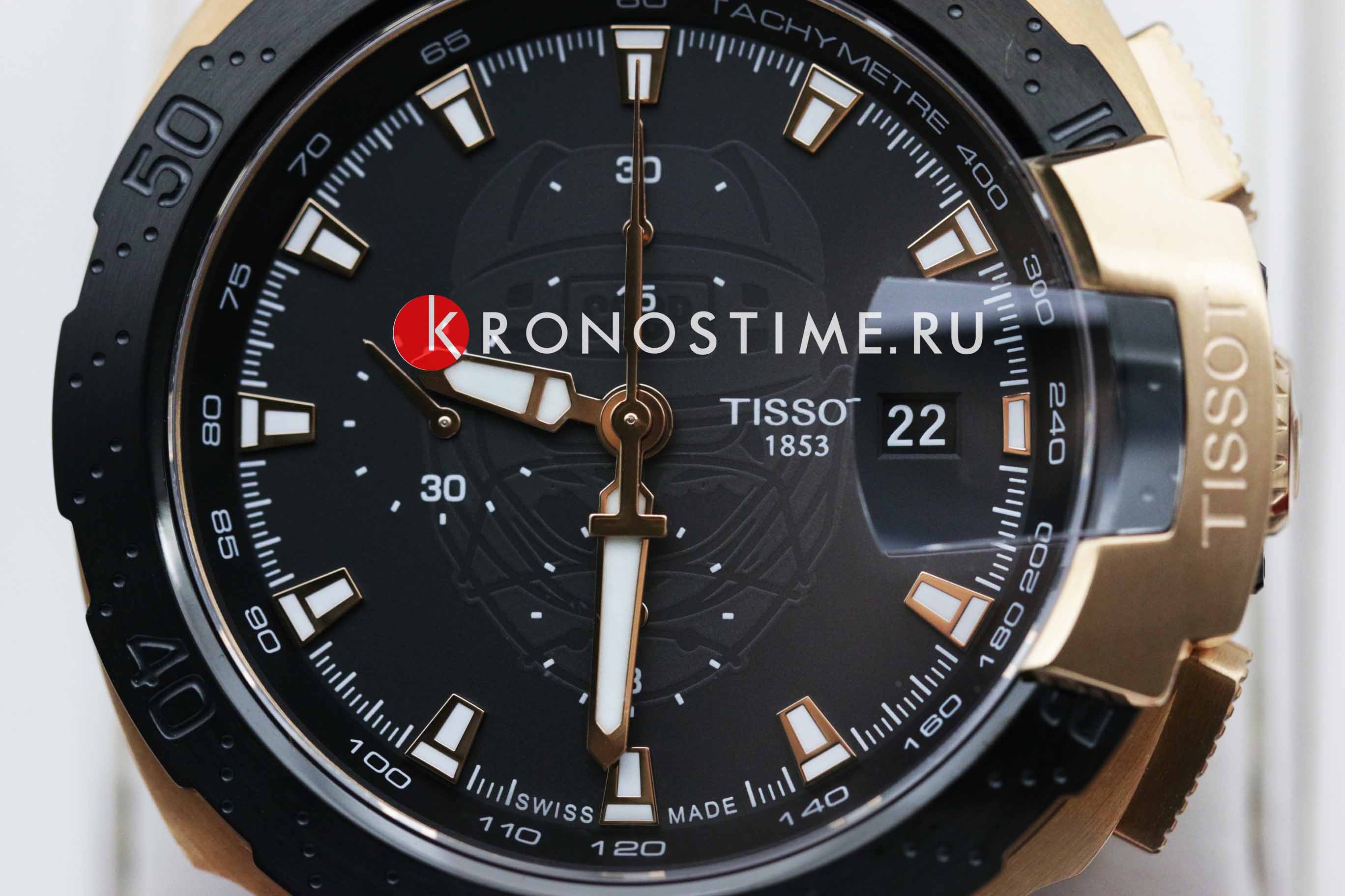 Мужские лимитированные швейцарские механические часы (20 экземпляров на Россию) из коллекции T-Race выпущены в честь легендарного хоккеиста Владислава Третьяка. (Владислав Третьяк — единственный хоккеист, которому удалось три раза получить награду лучшему хоккеисту Европы — «Золотую клюшку». Третьяк завоевал в общей сложности 90 медалей, в числе которых 3 золотые олимпийские, 10 золотых медалей чемпиона мира, 12 золотых — чемпиона Европы.) Часы с автоподзаводом, они оснащены популярным калибром ETA C01.211 с запасом хода 45 часов. Стальной корпус с чёрным и розово-золотистым PVDPVDУльтратонкое покрытие наносится в технике вакуумного напыления, сочетает в себе нитрид титана особой прочности со слоем золота или оксида хрома. Несёт в себе декоративную или защитную функцию.-покрытием. Сапфировое стеклоСапфировое стеклоПрочный и надёжный материал из кристалла сапфира синтетического происхождения, характеризующийся особой твёрдостью и устойчивостью к царапинам и повреждениям.. Удобный силиконовый браслет с раскладной застёжкойРаскладная застёжкаТакой тип застёжки используется только на браслетах из металла. Она никогда не раскрывается полностью, происходит разделение на 2 и более частей. Раскладывающая застёжка снизит вероятность потери часов к минимуму.. Люминесцентное покрытиеЛюминесцентное покрытиеПозволяет считывать показания времени в темноте. Производители наносят на стрелки, часовые индексы, безель или поверхность циферблата светонакопительный состав, дающий холодное свечение.. Водостойкость до 10 бар. СекундомерСекундомерСекундоме́р — прибор, способный измерять интервалы времени с точностью до долей секунды., тахиметрТахиметрРазмеченная шкала, располагается на ободке или безеле часов. Тахиметр позволяет рассчитать скорость на определённом участке пути, расстояние измеряется в километрах или милях., индикация числа. Габариты: 47,25 x 45 x 16 мм. Производство и сборка: Швейцария.