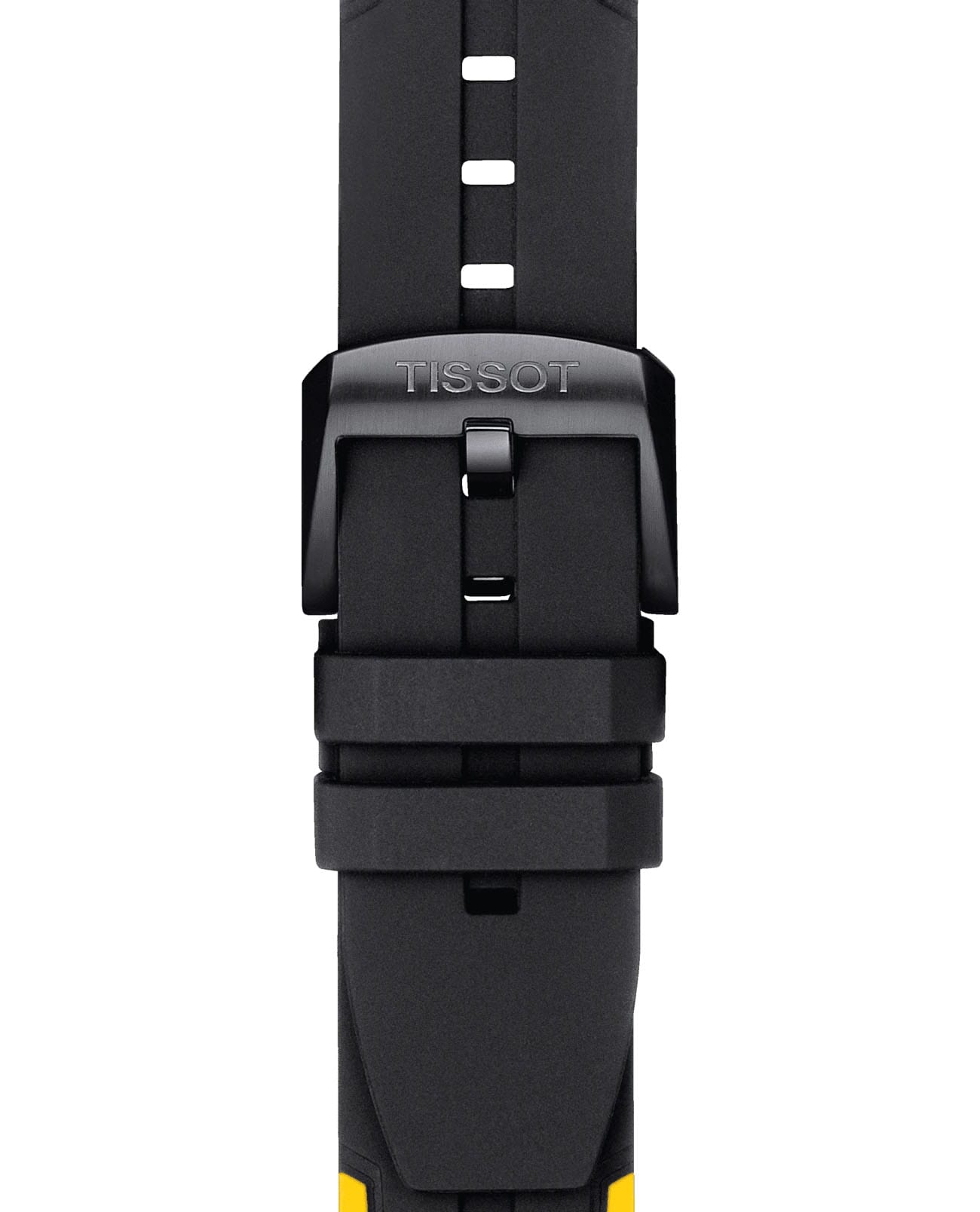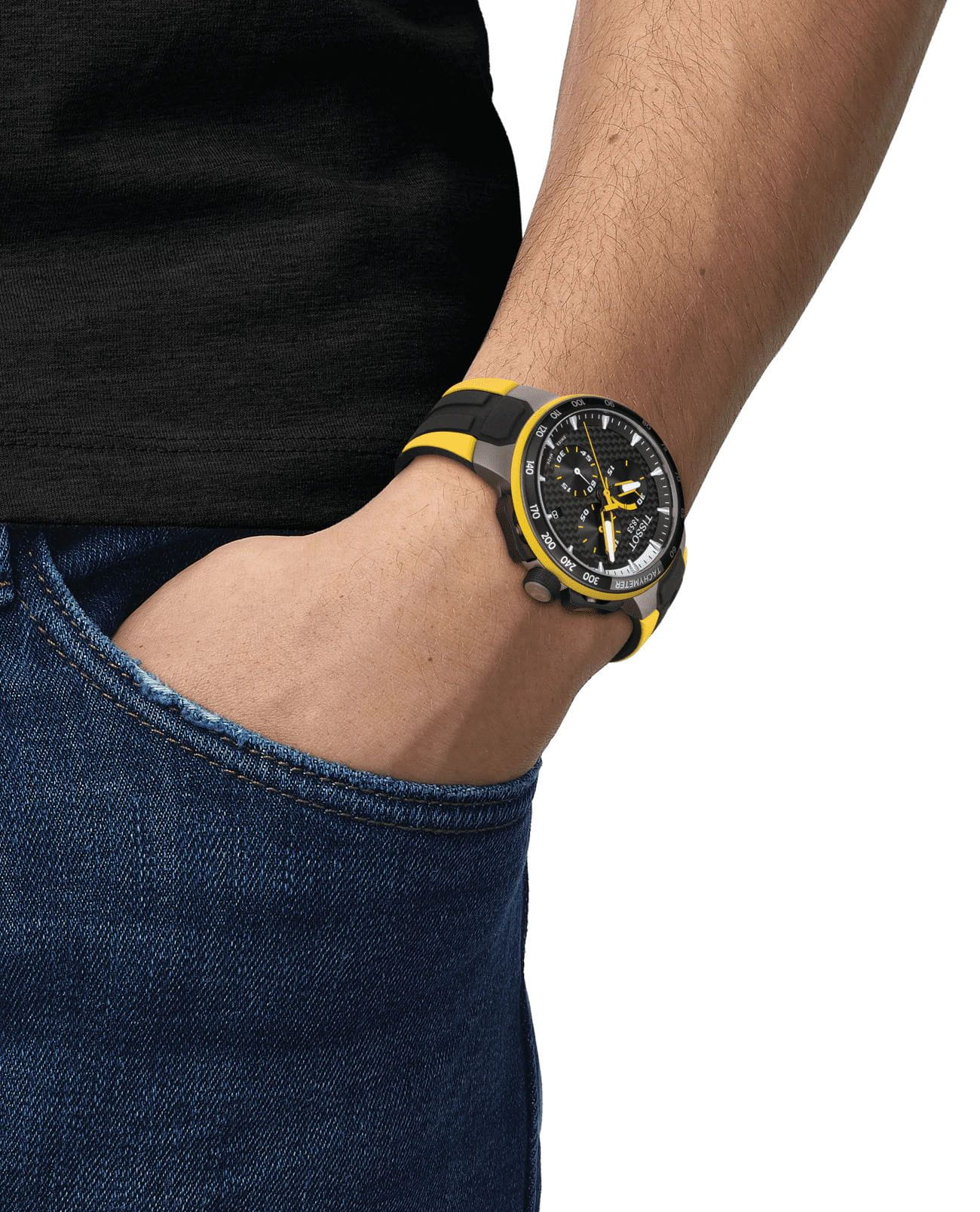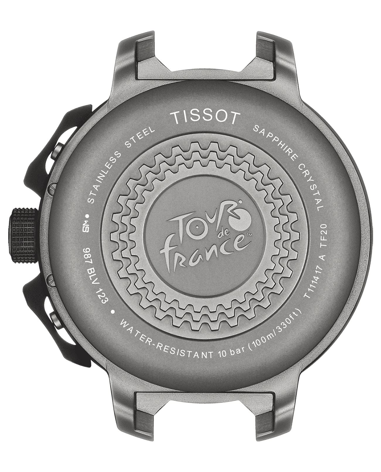 Мужские наручные часы Limited Edition из коллекции T-Race Cycling посвящены известной велогонке Tour de France, о чём нам говорит оригинальная гравировка на задней крышке.
