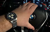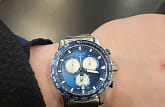 Современный хронографХронографФункция позволяет измерять отрезки времени с особой точностью: часы, минуты, секунды. Верным признаком хронографа является наличие на циферблате 3 дополнительных окошек-счётчиков. поможет подчеркнуть продуманный образ делового мужчины. Модель выполнена в спокойной серебристо-синей расцветке. Наручные часы функционируют благодаря швейцарскому кварцевому механизму. Калибр отличается максимальной точностью хода. Водостойкость 100 метров. Надёжный корпус из антикоррозионной стали 316L. Люминесцентная подсветкаЛюминесцентное покрытиеПозволяет считывать показания времени в темноте. Производители наносят на стрелки, часовые индексы, безель или поверхность циферблата светонакопительный состав, дающий холодное свечение. стрелок и индексов. Отображение даты. Диаметр корпуса: 45,5 мм.
