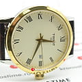 Модель отличается крупным корпусом из нержавеющей стали 316L с PVD-покрытиемPVDУльтратонкое покрытие наносится в технике вакуумного напыления, сочетает в себе нитрид титана особой прочности со слоем золота или оксида хрома. Несёт в себе декоративную или защитную функцию.. Швейцарский кварцевый калибр ETA F06.115 высоко ценится за безупречную точность хода. Сапфировое стекло отличается 100% устойчивостью к царапинам. Кожаный ремешок дополнен надёжной , препятствующей случайному расстёгиванию часов. На метке 3 часов размещена апертура даты.